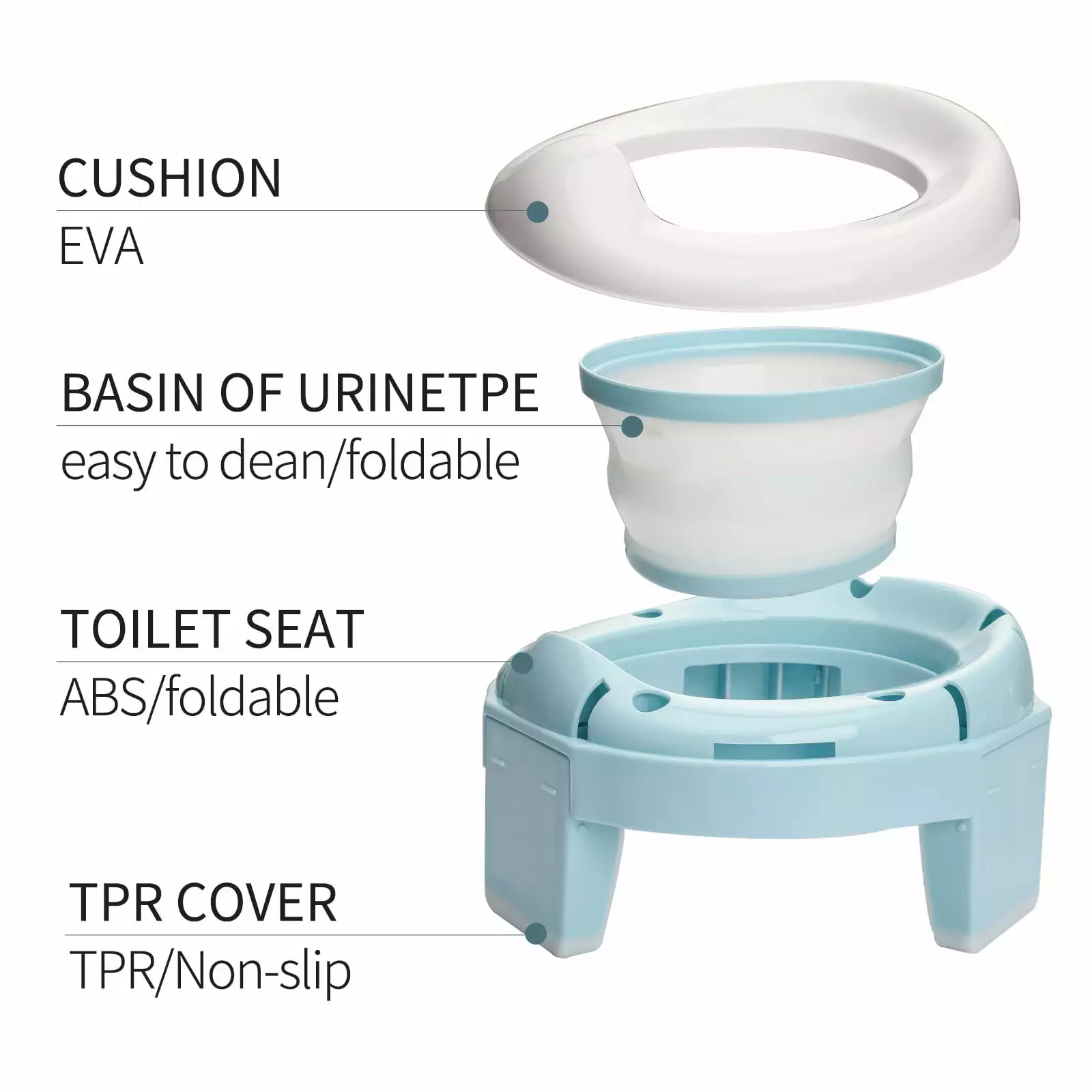 Safety Non-slip Design: The bottom of the portable potty seat has a silicone non-slip foot pad. a triangular stable structure design. and the legs can be firmly locked by a groove. so the toilet seat is very stable. allowing your child to gain more confidence while using the toilet as a beginner.