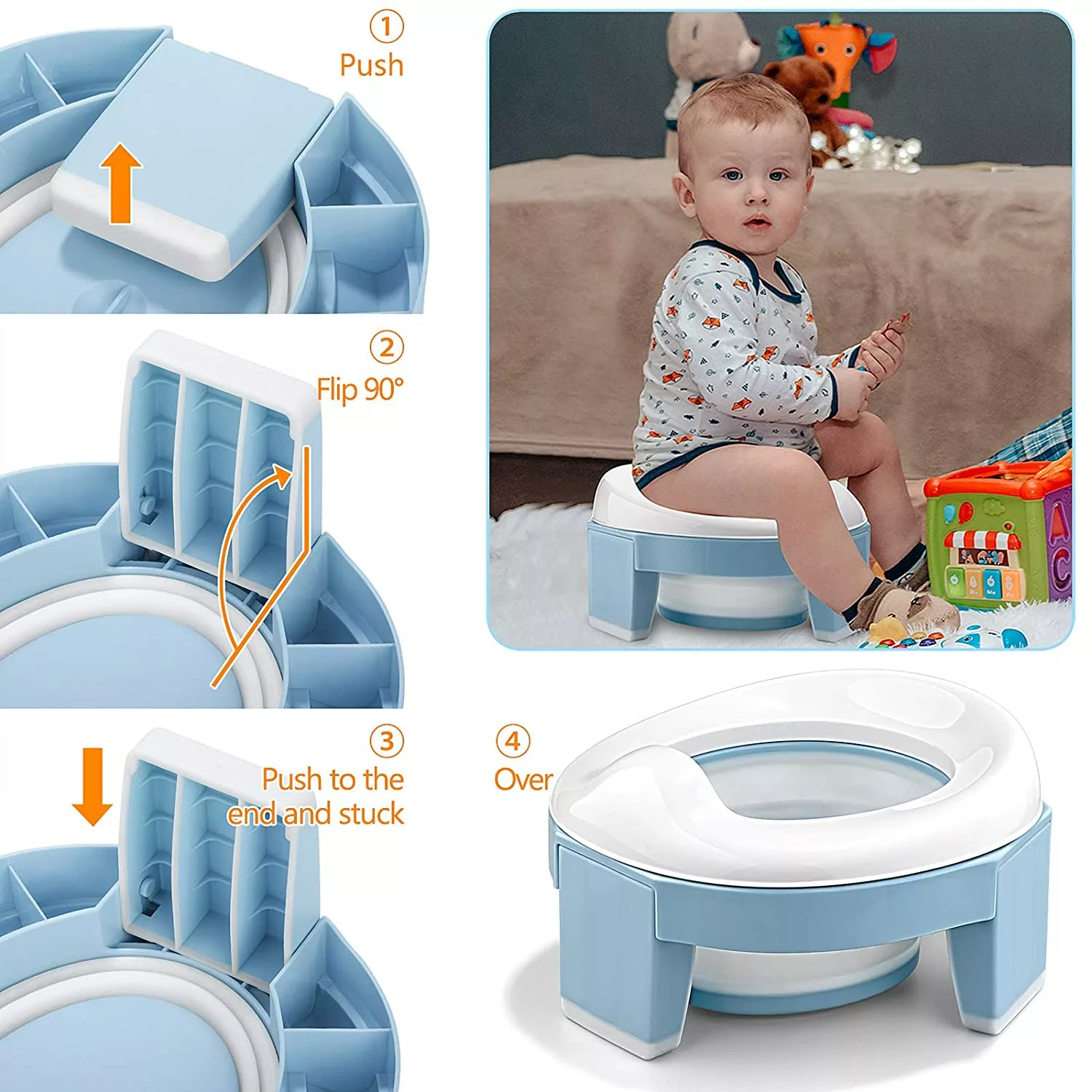 Advantage function: The Toilet Training Potties. let your kids&toddler train and try the toilet independently. this is the best helper for your kids. It can not only be used as an independent potty training device. but also can be combined with a household toilet to form a small toilet for your toddler to use.