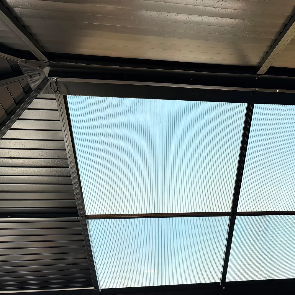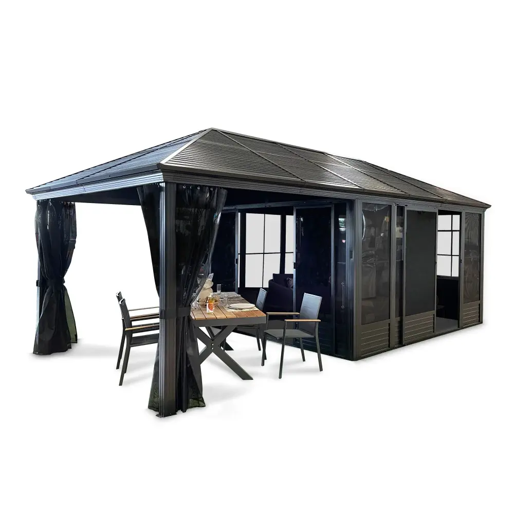 The Chalet pavilion has two distinct sections; one enclosed for total privacy and the other open to enjoy the yard. You can create a complete outdoor living space thanks to its generous size.