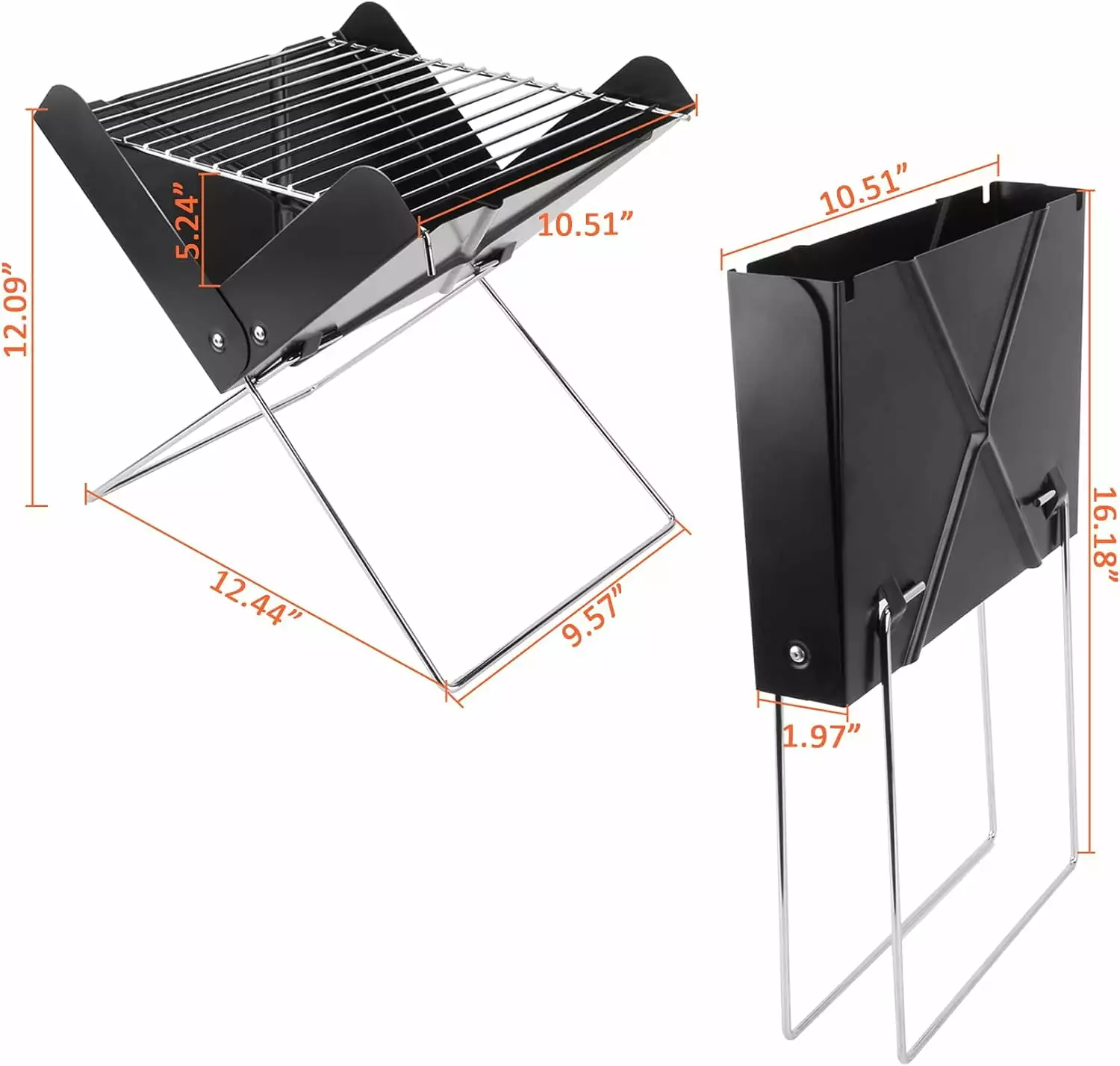 - Foldable & Portable: The charcoa grill folding compact but sets up in seconds or less. This barbecue grill is not only foldable. but also small and lightweight. which is particularly easy to carry. It can be folded into ultra-thin. saving space. and it is very suitable for storing this lightweight foldable grill in very small kitchens. trunks. outdoor occasions. or even to put in your bag. as it is easy to carry to anywhere.
