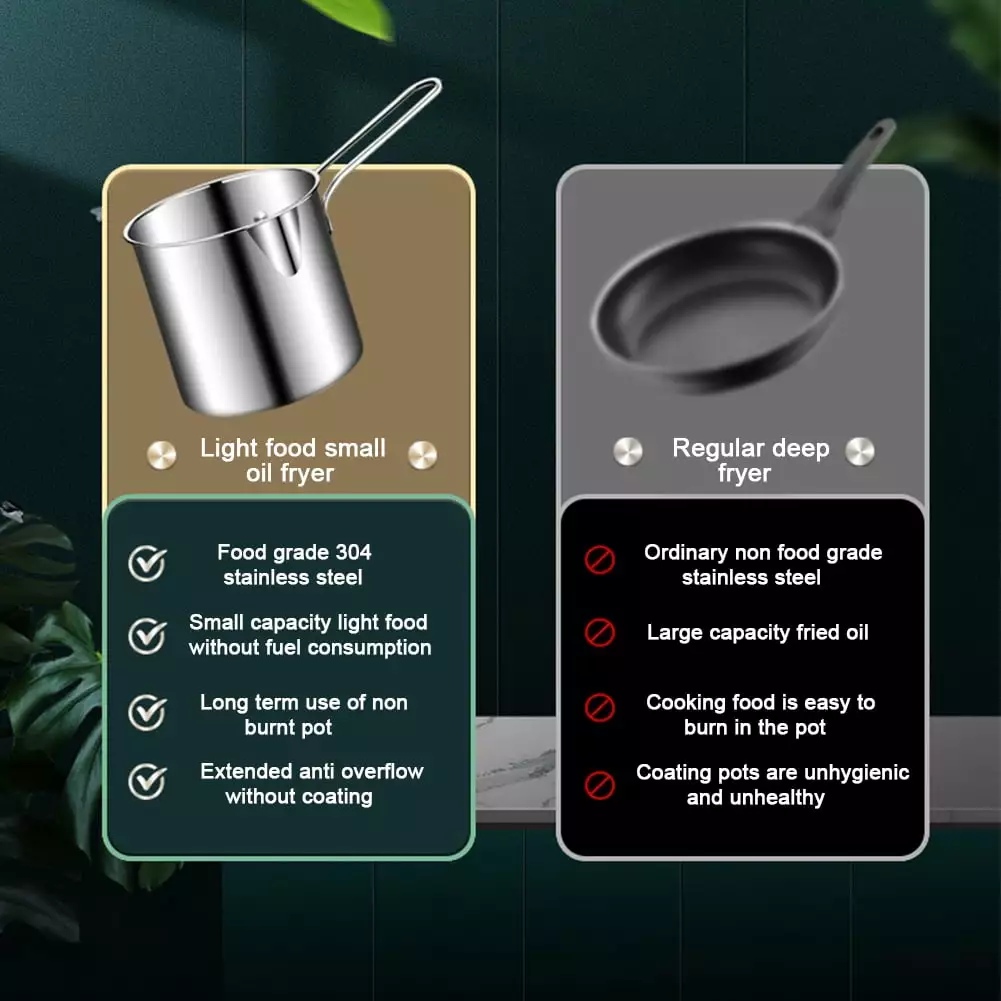 - Deep fryer frying pan: The pot body transfers heat quickly and can quickly heat the entire bottom of the pot. so that the food is heated quickly without waiting for a long time. Stainless steel fryer set metal fryer and basket deep fryer kitchen frying basket.