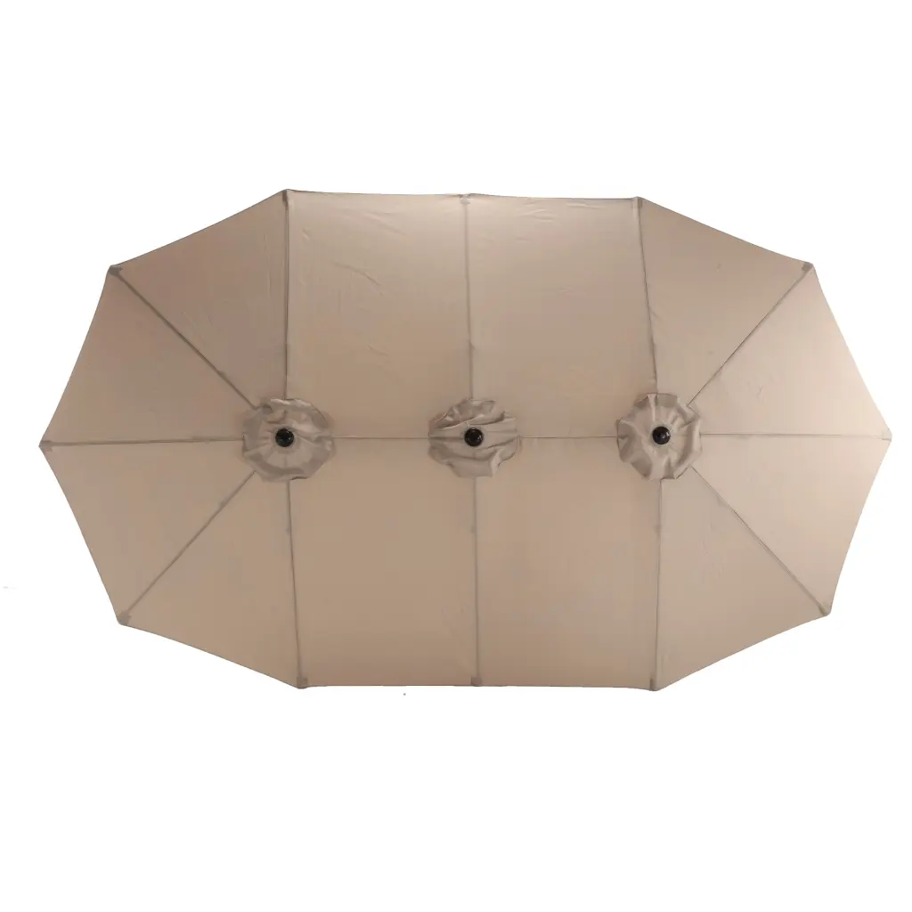 14.8 Ft Double Sided Outdoor Umbrella Rectangular Large with Crank ( khaki ) Specification: Powerful Shading Effect The umbrella is designed by extra-large double-sided, perfect for summer or sunny days to shade sunshine and is suitable for garden, backyards, poolside and beach. Convenient crank open/close system e