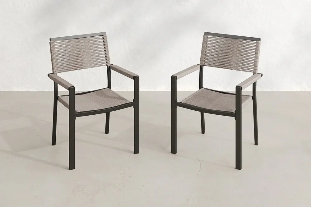 2 PCS Patio Dining Chairs with Metal Frame and Armrests