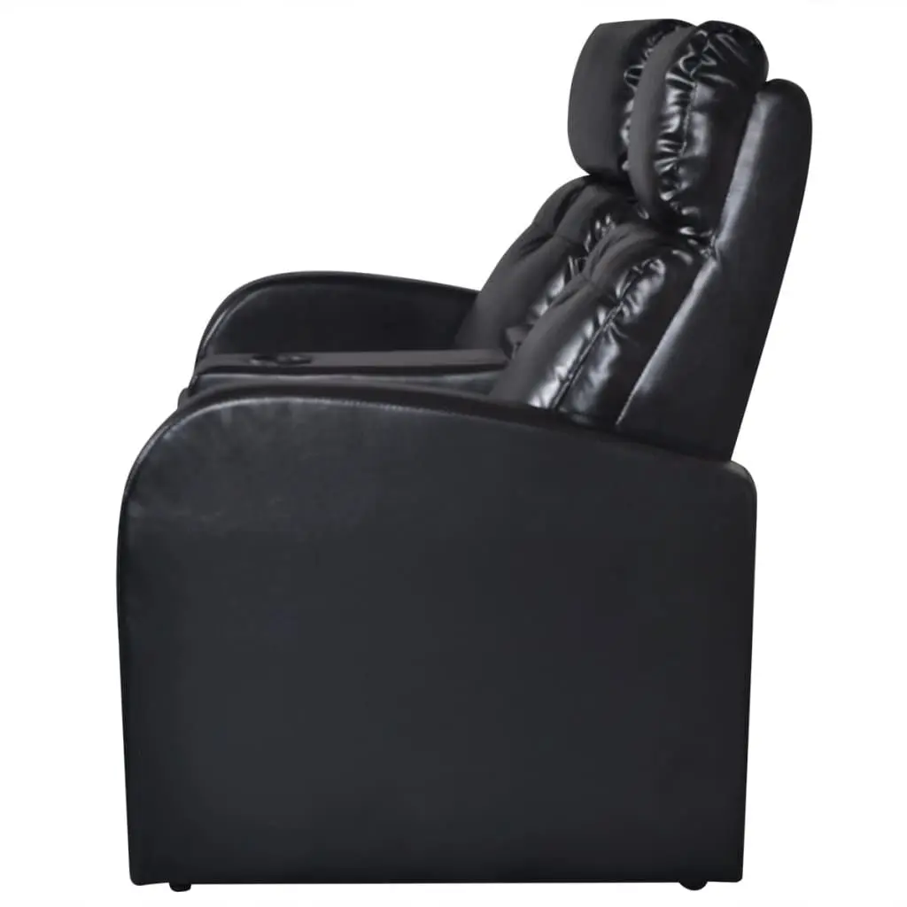 This high-quality double reclining armchair has wide seats and thickly padded cushions for the utmost seating comfort. Our artificial leather sofa can be easily transformed into a recliner with extended footrest and lowered supportrest. Upholstered in glossy artificial leather, this reclining armchair looks inviting and is simple to clean. Thanks to its built-in cup holder in the middle armrest, drinks and cups will conveniently discover their place.
