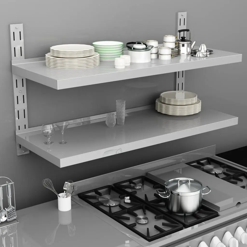 Our 2-tier stainless steel wall shelf is not only stylish but very functional, which will be a great option for those in need of extra storage space in kitchens. It serves as a perfect place for keeping plates, dishes, as well as various other kitchenwares.