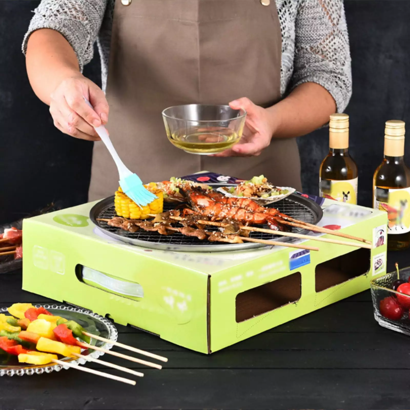 Descrition: Perfect design:stainless steel chassis grill. safe and durable. The grilling mesh is 12in long providing you with large surface to enjoy the delicious barbecue. The grilling mesh used for faster thermal conductivity. The heightened base has good conductivity. The groove design on the stove surface fits closely and does not slide. The kraft paper box rack has vents. which is conducive to ventilation for good circulation and faster food cooking.