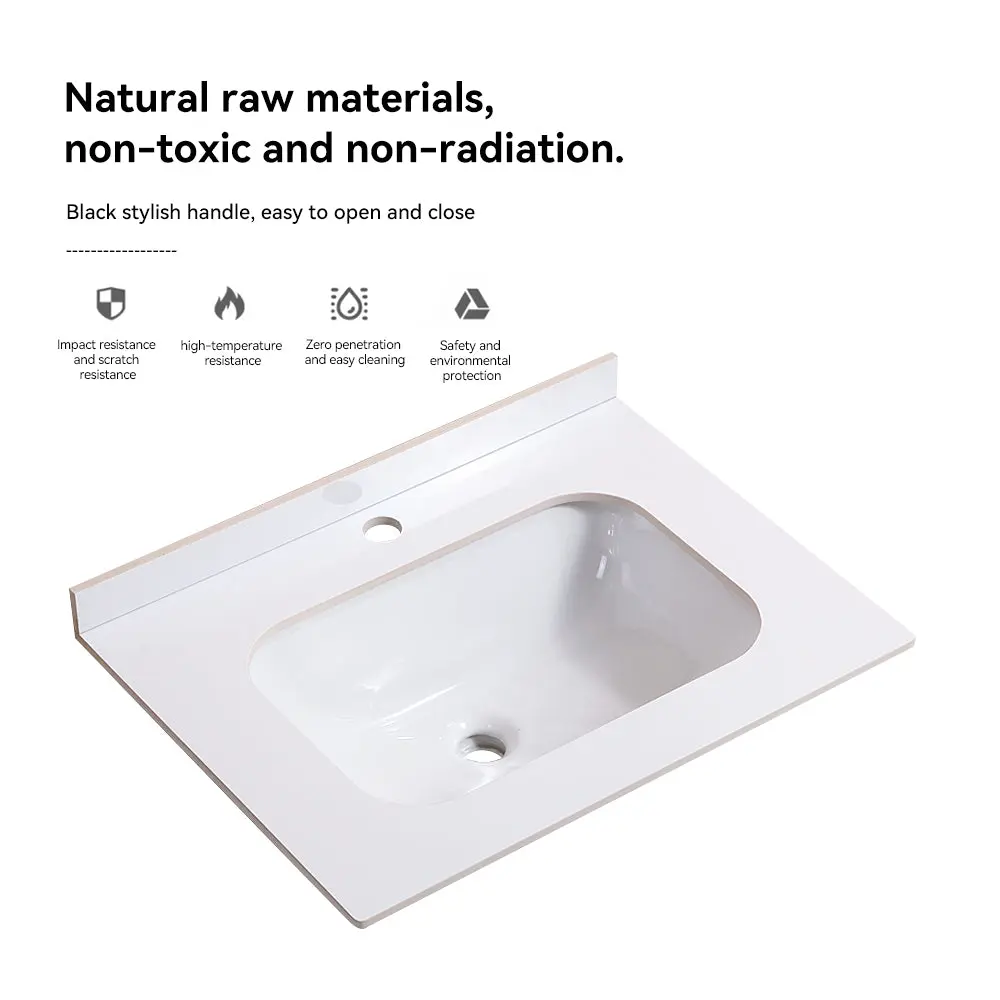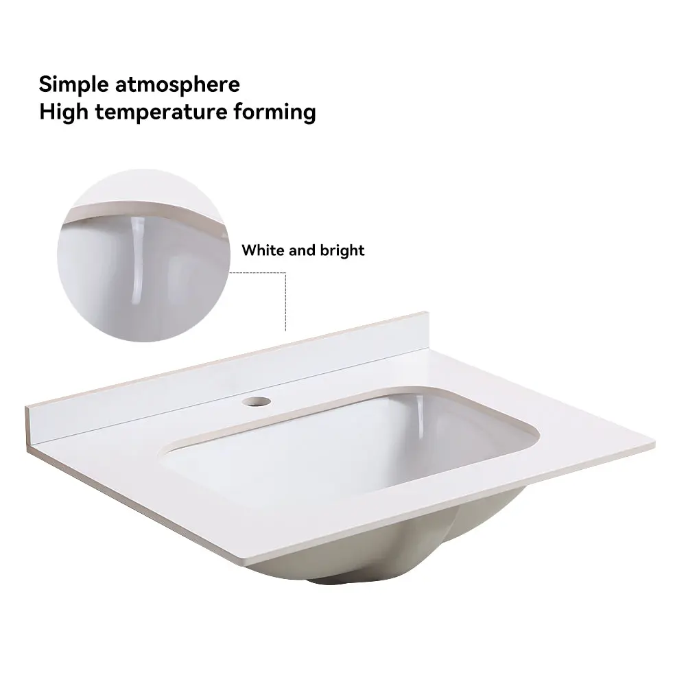 24″ Bathroom Vanity Bathroom Vanity Withe Specification: Porcelain Sink Porcelain sinks not only enhance the overall aesthetics of the bathroom, but also provide long-lasting durability. This exquisite design seamlessly blends high-quality ceramic countertops with independent plywood cabinets, creating stunning visual