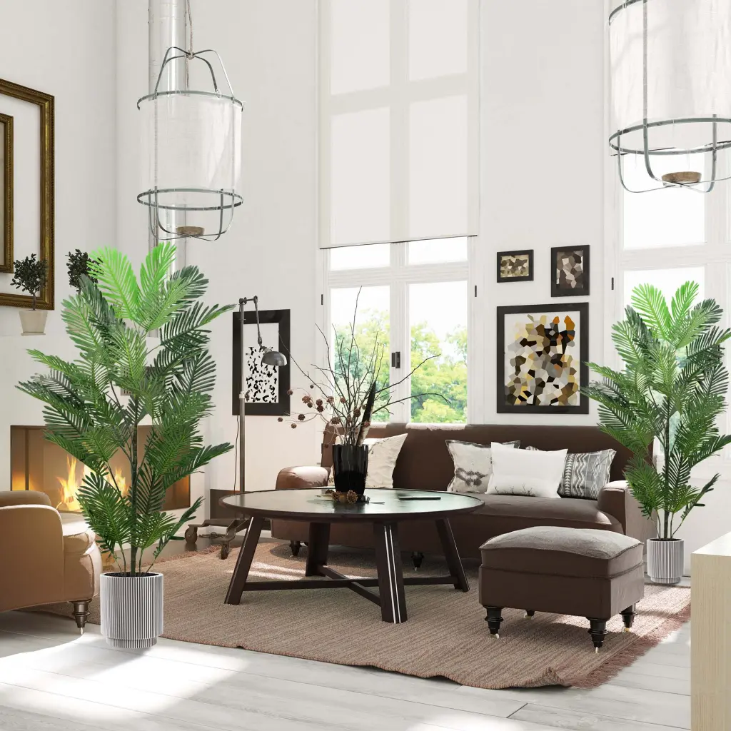 Fake Palm Plants:The leaves are different from ordinary palm trees, as they are larger and have more realistic colors. And whether it’s the branches or leaves, they all have wire designs inside, making it easier to create different curved shapes according to the indoor style.