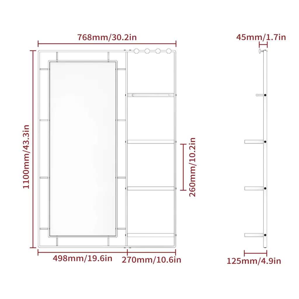 Multi-layer storage space, the decoration mirror meets the needs of placing daily supplies and pendants storage function.