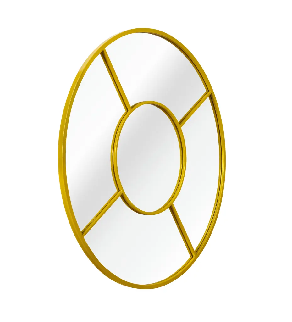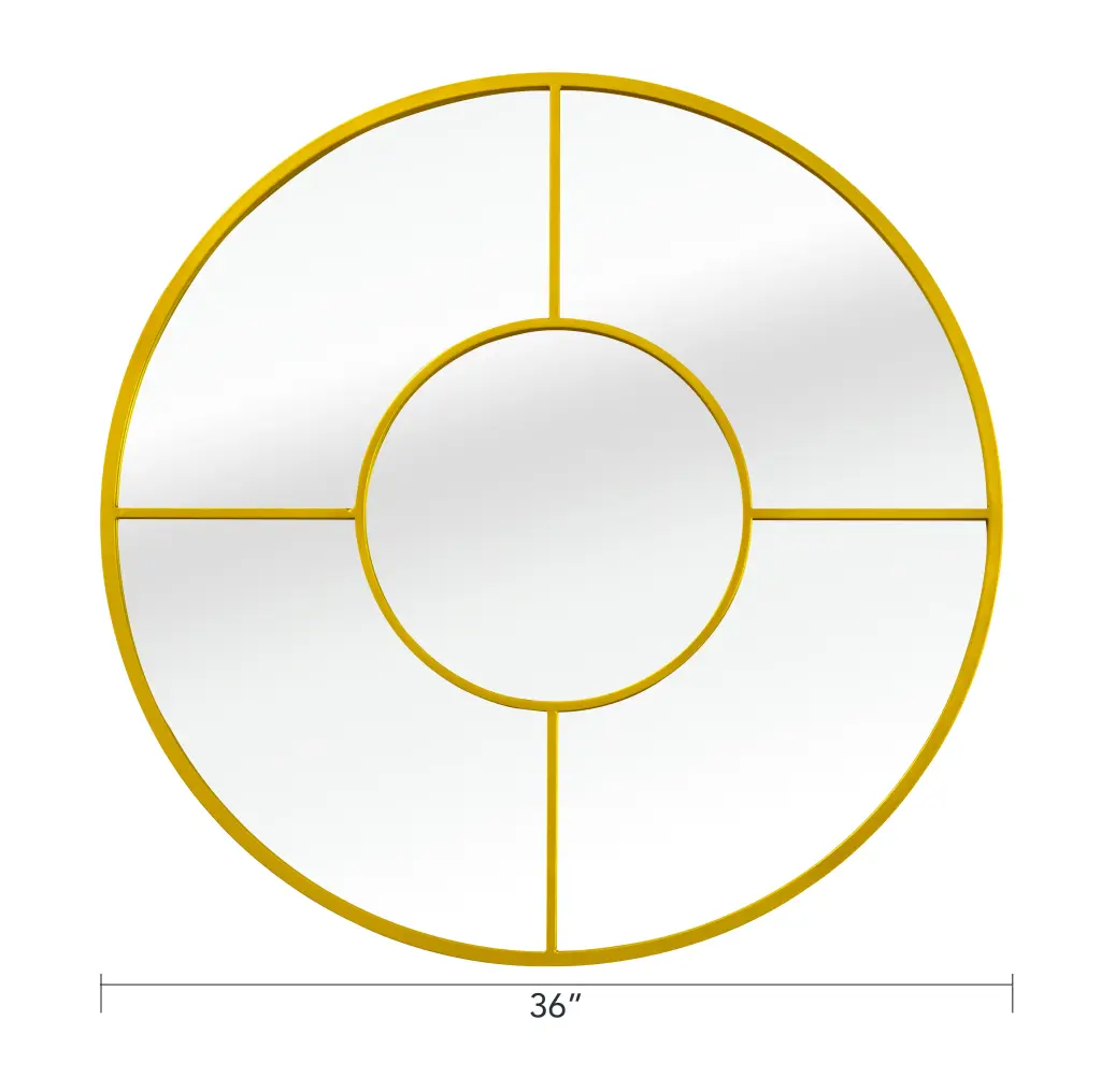 Precious metal 36 In Decoration Metallic Round mirror Characteristics: 36 inches diameter large round mirror are a blend of whimsy and elegance, and they look best in modern, contemporary rooms. The wall mirror is made of high quality 4mm Hd glass with no distortion and the brushed frame of circle mirror is premium anti-rust