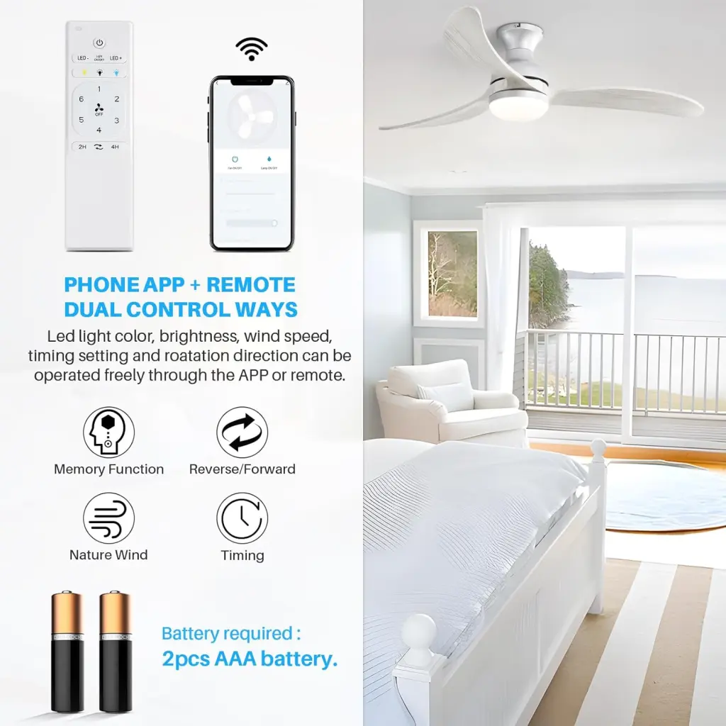 Multiple Smart Control: The smart control ceiling Fans integrate App and voice control, allowing you to control your ceiling fan via Wi-Fi, Alexa, Google Home, Siri and apps from anywhere, easily adapting to any scene needs.