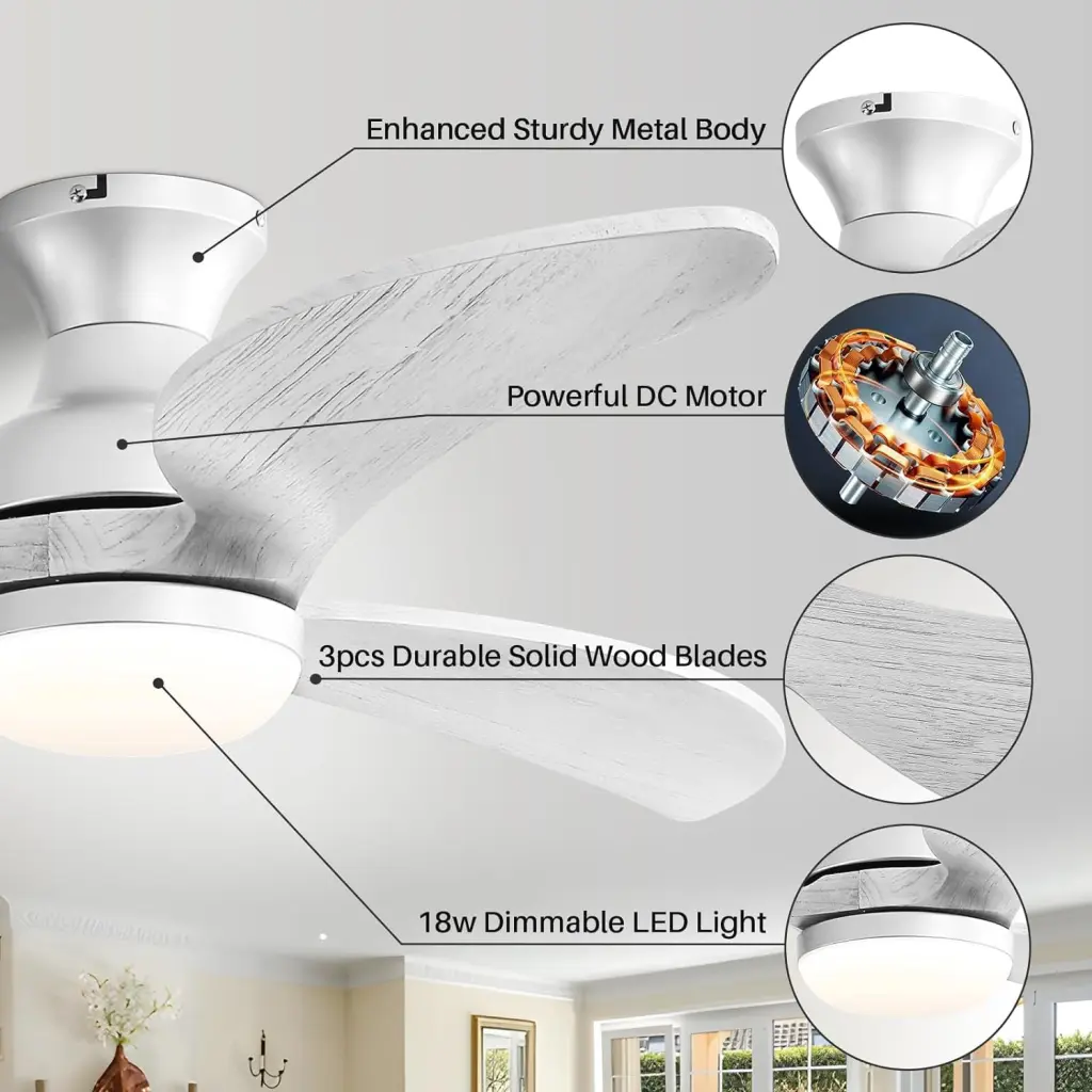Reversible Dc Motor: Enjoy year-round comfort with a reversible ceiling fan that efficiently switches between downward airflow for summer and upward airflow for winter, ensuring even heat distribution throughout the room.