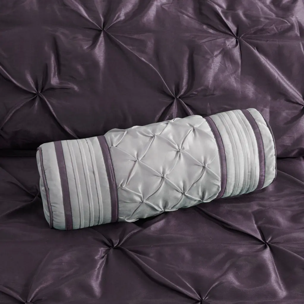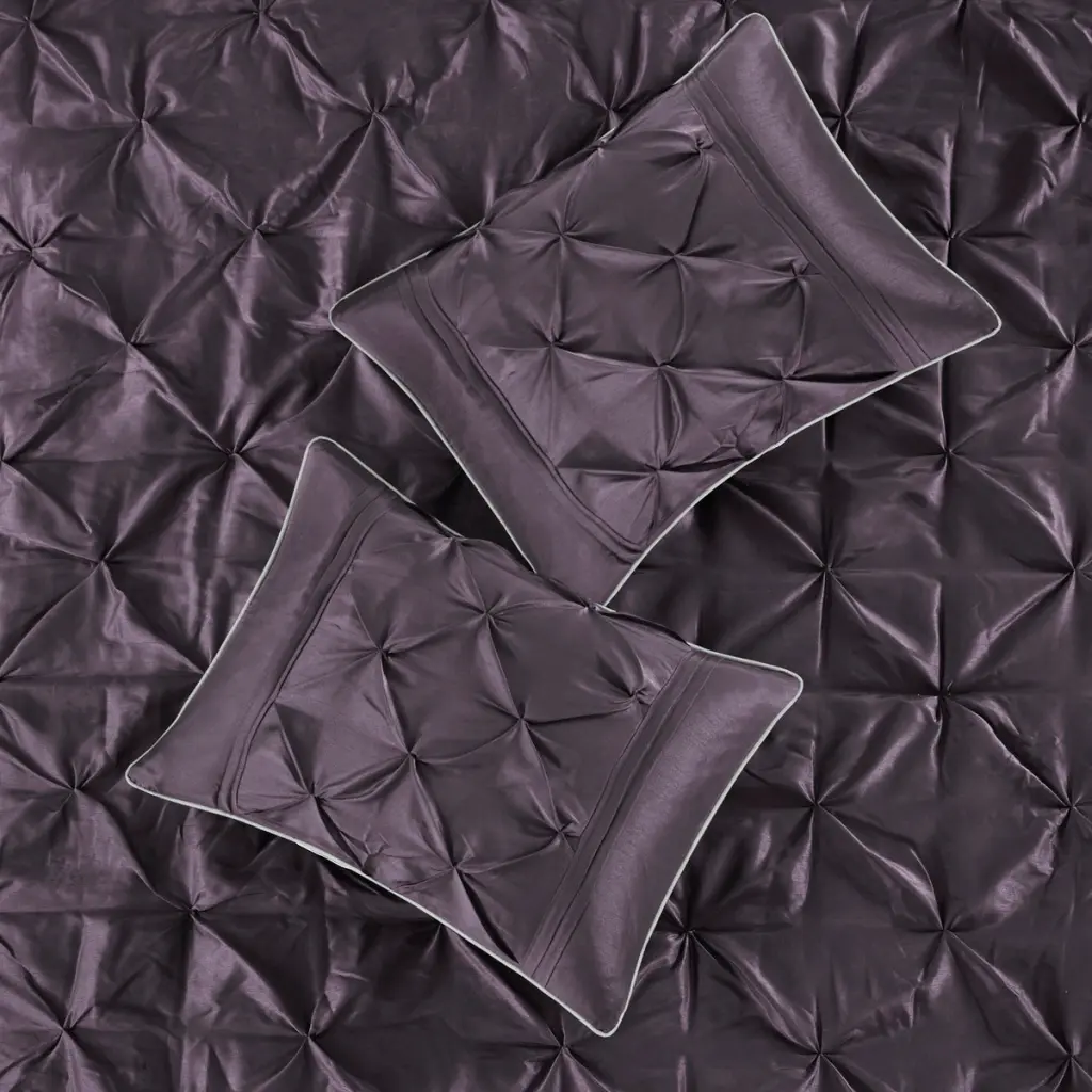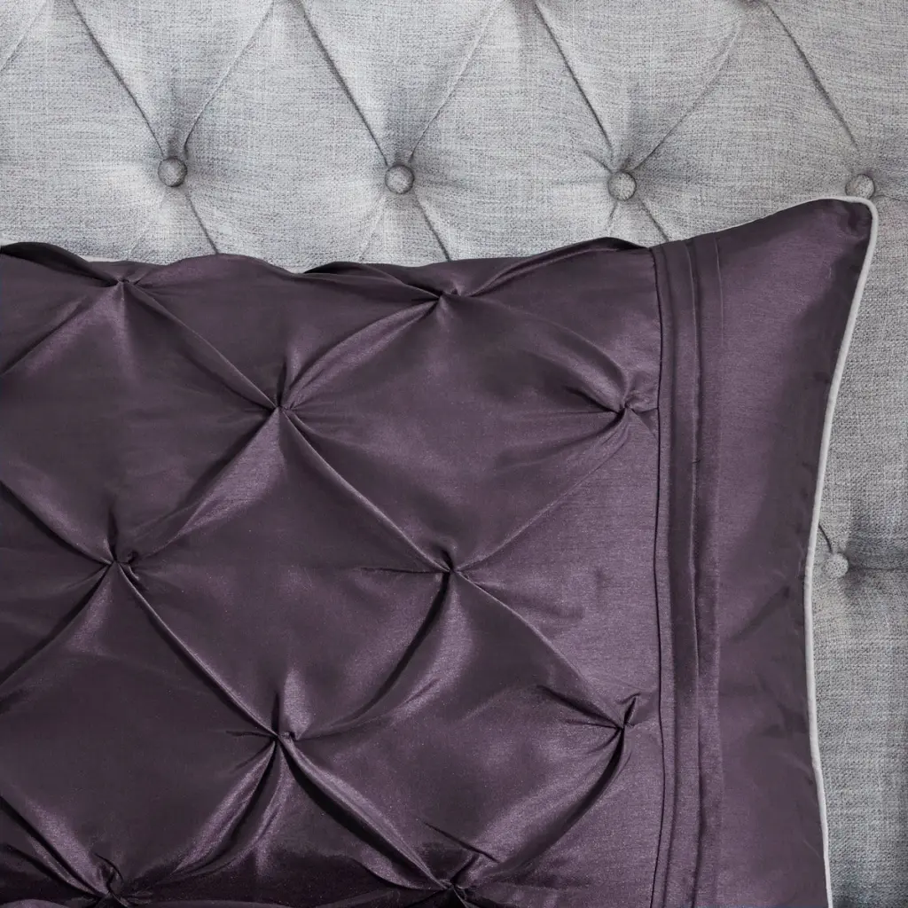 7 Piece Tufted Comforter Set Plum Cal King Specification: Specification This beautifully tufted bed is from the Laurel bedding collection. Its deep plum coloring makes this set create a statement in your bedroom. The collection is made from 100% polyester polyoni and has pieced fabric sewn together to give this set d