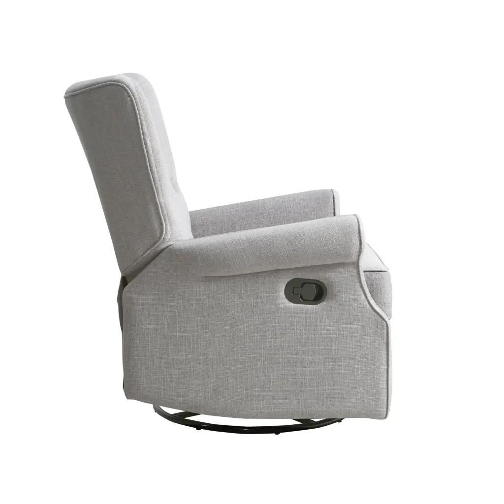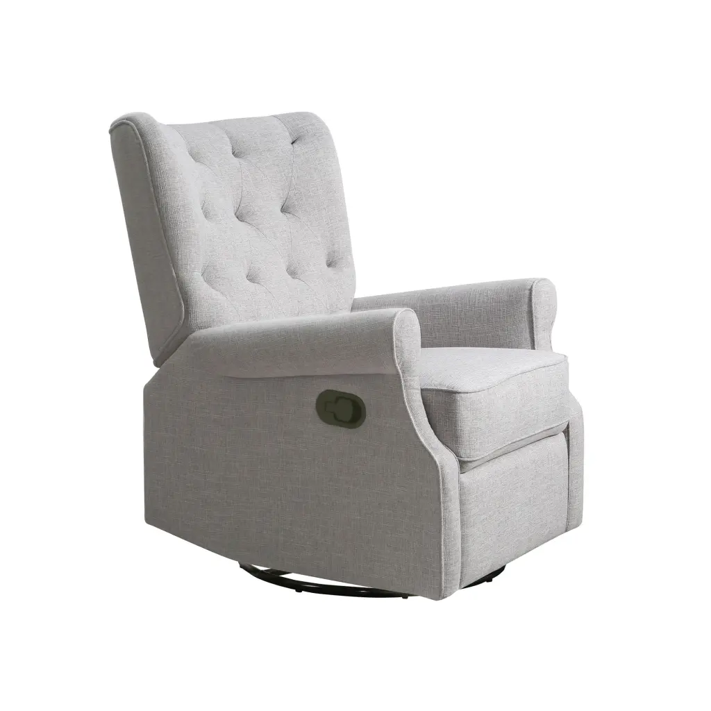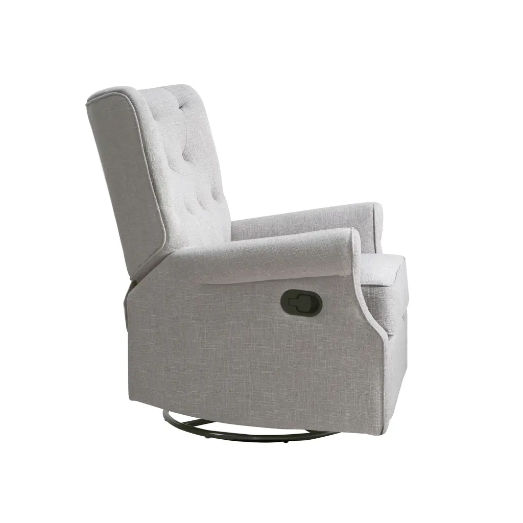 Alice Wingback Recliner in Linen Grey Characteristics: Button Tufting Detail Soft-Touch Polyester Velvet in a Variety of Hues 3 Position Recliner Swivel and Gliding Functions Sturdy Timber Frame Category: Chairs & Accent Seating Is This Item Customized: No Place of Origin: China Lithium Battery Contained: No