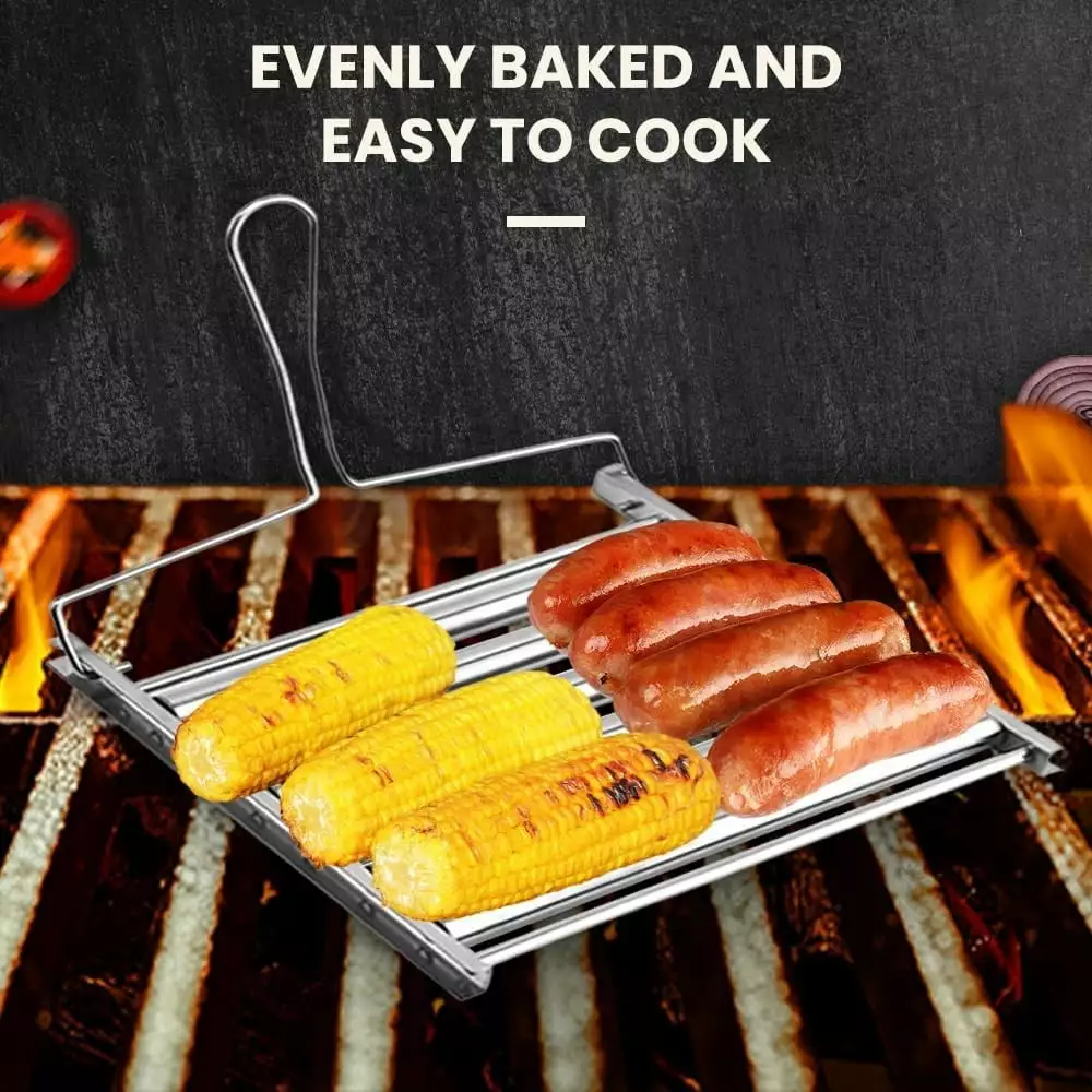 Aminojy Foldable Stainless Steel Sausage Roller Rack for Evenly Cooked Hot Dogs Outdoor BBQ