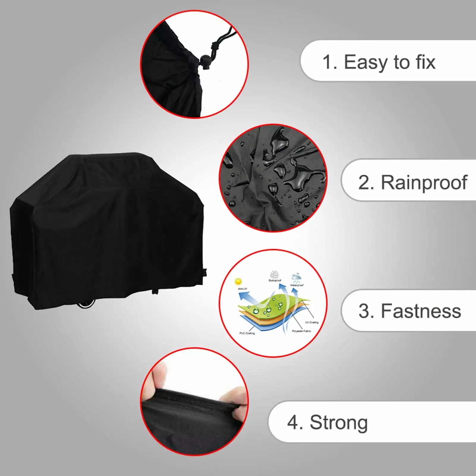 - Size: Our grill dust cover is available in three sizes: S: 145x61x117cm. L: 170x61x117cm. XL: 190x71x117cm. Note Please choose the dust cover according to the size of your grill.