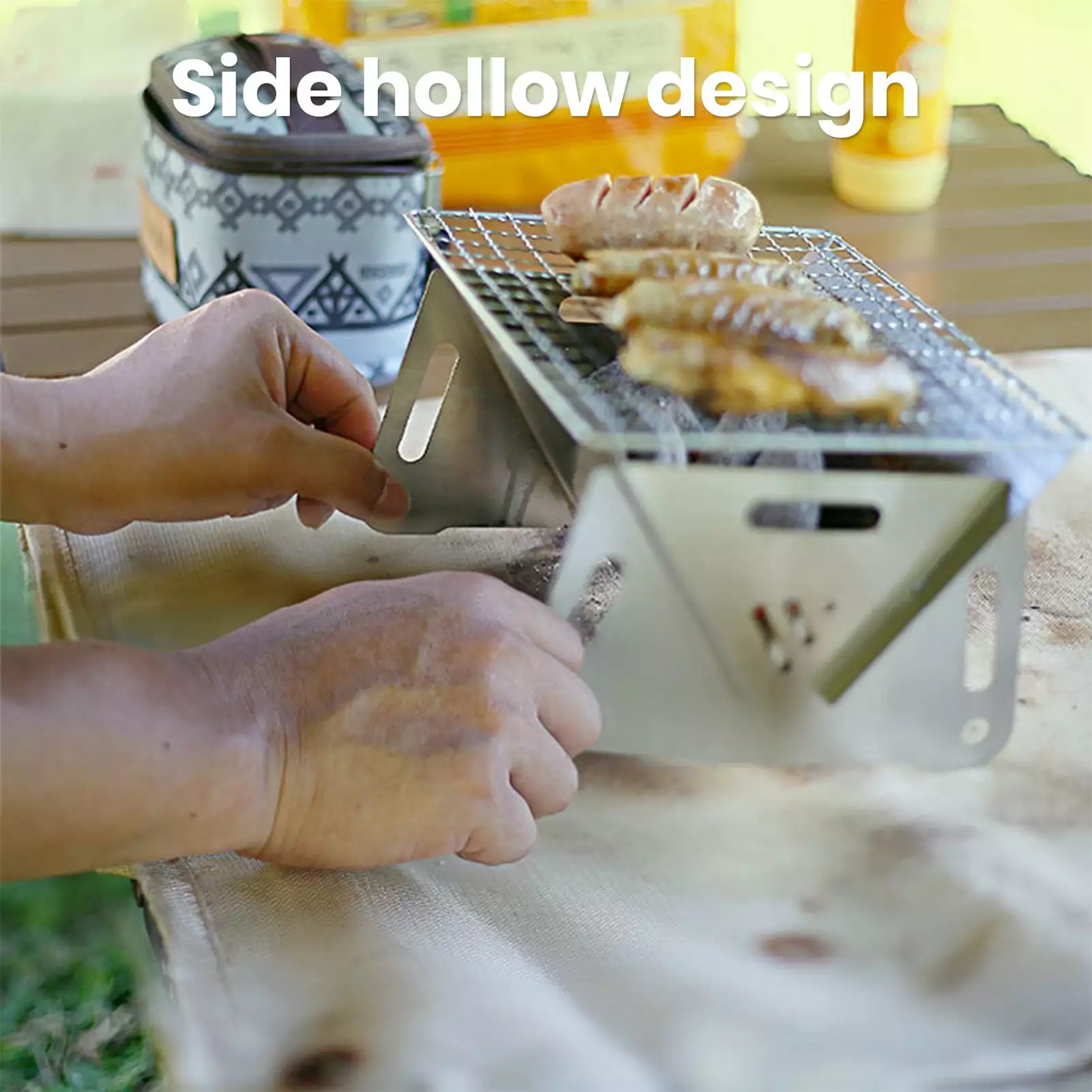 - With its practical design elements such as the side hollow structure for easy gripping and mobility. this folding stainless steel grill elevates your outdoor cooking experience with efficiency and ease.