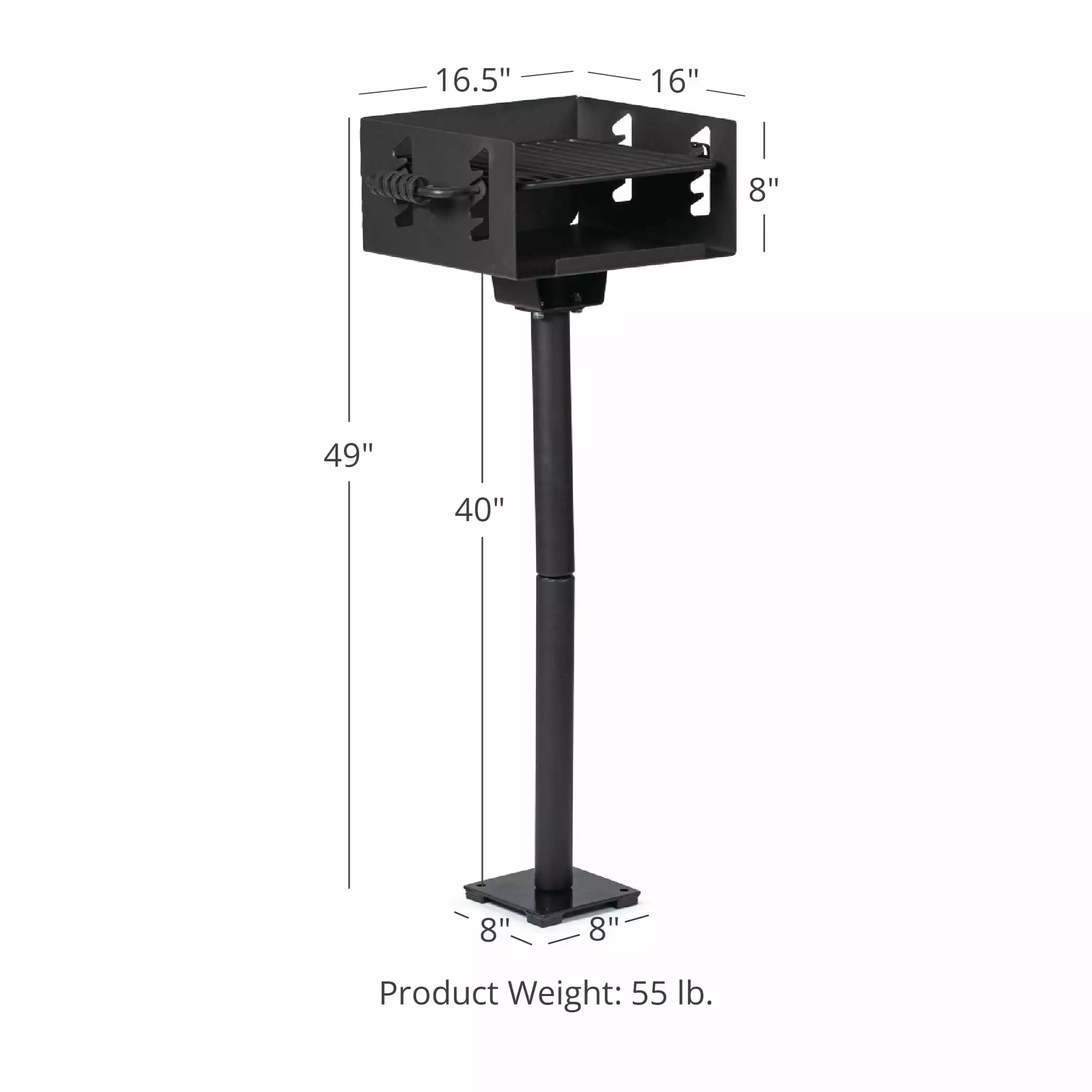 - PARK STYLE CHARCOAL GRILL: This park style charcoal grill features an in-ground design and is ideal for small to medium sized cookouts perfect for grilling mouth-watering burgers. steaks. kabobs and more in the backyard or at a campsite!