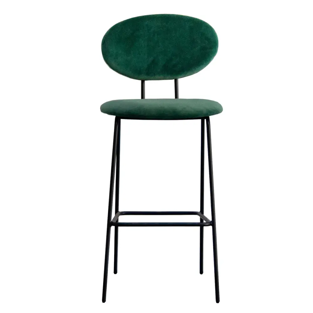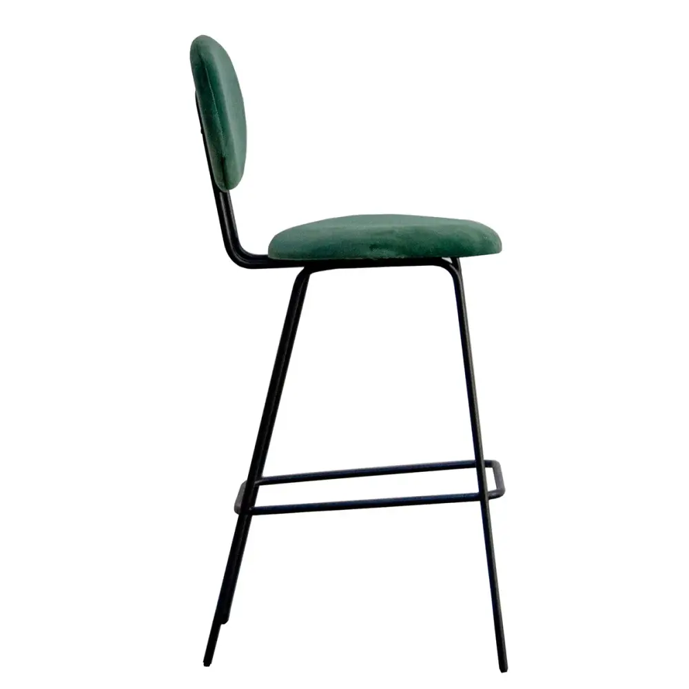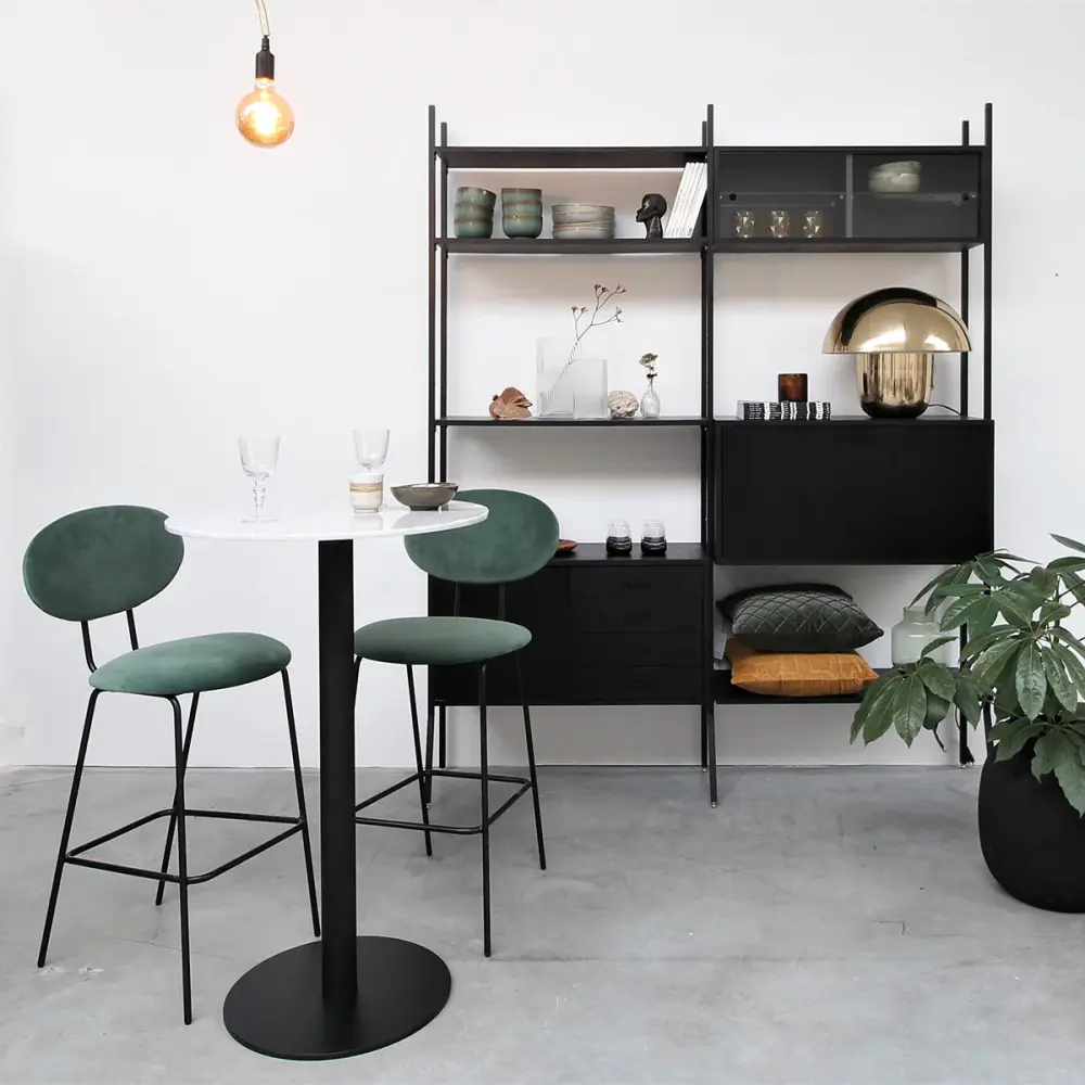 London is a chic bar stool with a comfortable dark olive velvet seat and back. The frame is made of black metal. Because the seat and backrest have a round shape, this bar stool has a very sophisticated look. The colours go beautifully with white and black marble.