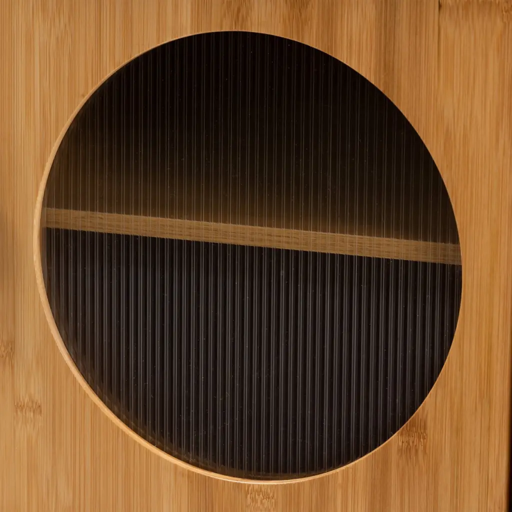 Baxton Studio Naresh Mid-Century Modern Transitional Natural Brown Bamboo Wood 1-Door End Table Express a style of casual elegance in your space with the carefree flair of the Naresh end table. Made in China. this stunning piece exudes mid-century charm with a bamboo frame embellished with a circular see-through window. The door opens to reveal two shelves that efficiently organize household essentials while reserving the tabletop for daily use. The Naresh requires assembly and features a minimalist door handle to draw attention to the natural grain of the wood. Clean lines and rounded legs produce a delightful silhouette. making the Naresh end table a chic accent in any layout.