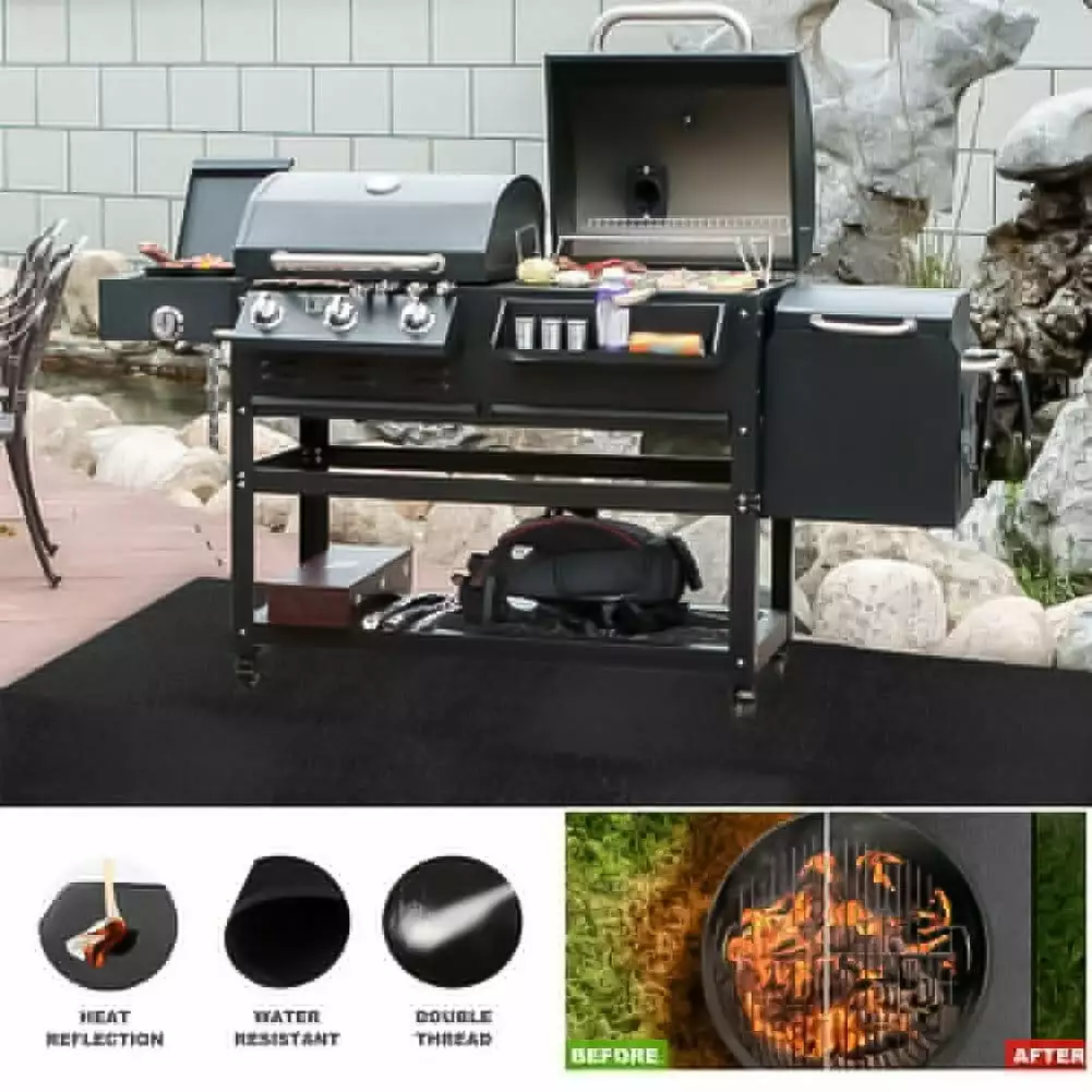 - You’d better use it when you grill in a backyard or outdoors. it can protect decks from damage by catching grease. what’s more. it can also reduce the friction between the grill and the ground to offer.