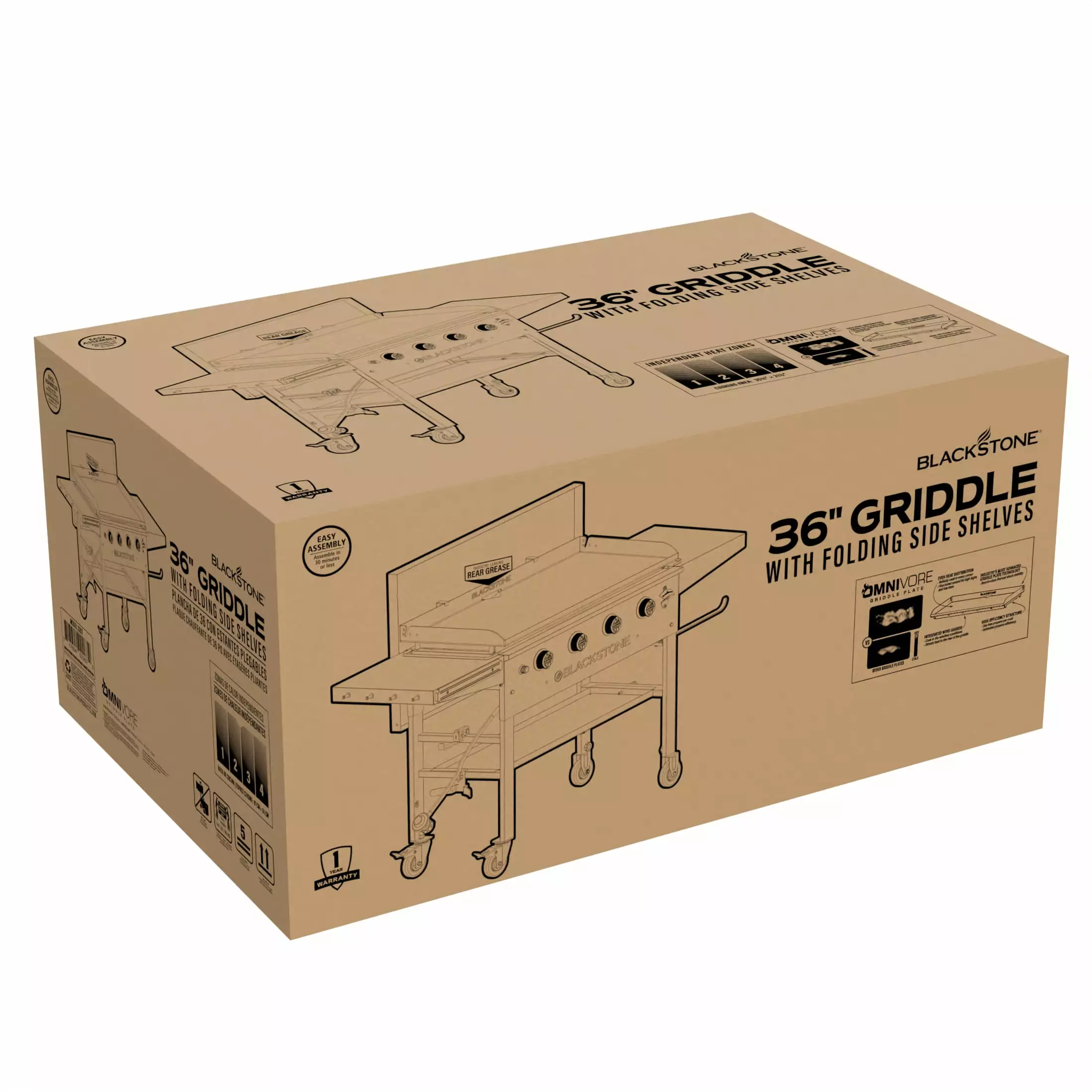 Gather family and friends to enjoy a delicious meal made on this Blackstone Original 4-Burner 36" Omnivore Griddle with Hard Cover. With 768 square inches of griddle space and 4 independently heated burners give you enough space to cook for a crowd. Enjoy two spacious side shelves for easy meal prep and serving. a magnetic tool strip. tool hooks. and a paper towel holder. Cook breakfast. lunch. or dinner on the versatile griddle top and when you are done. use the included hard cover to protect the griddle surface. Give your outdoor kitchen an upgrade with this Blackstone 36" Griddle with Hard Cover.
