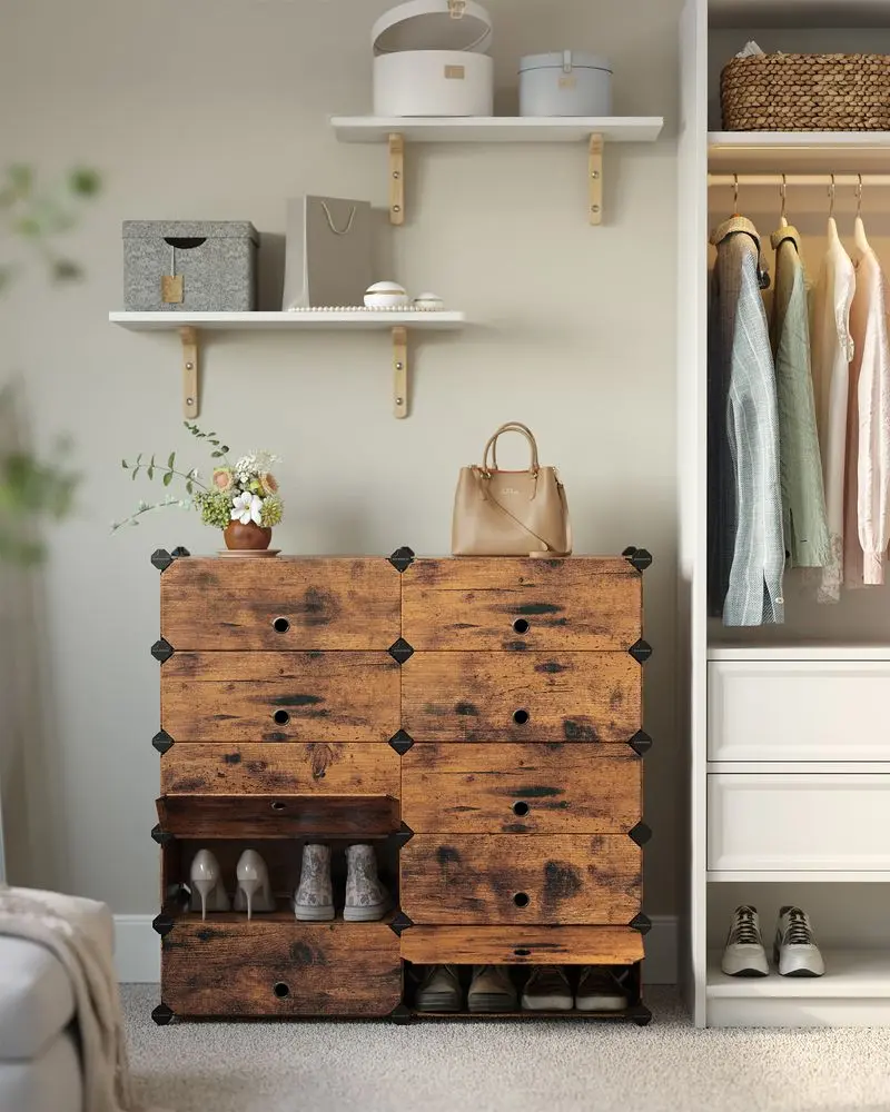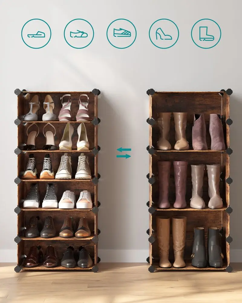 Fashion Meets Function: Who knew shoe storage could look so good? Fans of rustic did! Awash in a warm brown tone, this 10-tier shoe rack will bring a big dose of rustic vibes while the customisable design assists keep your home in perfect order