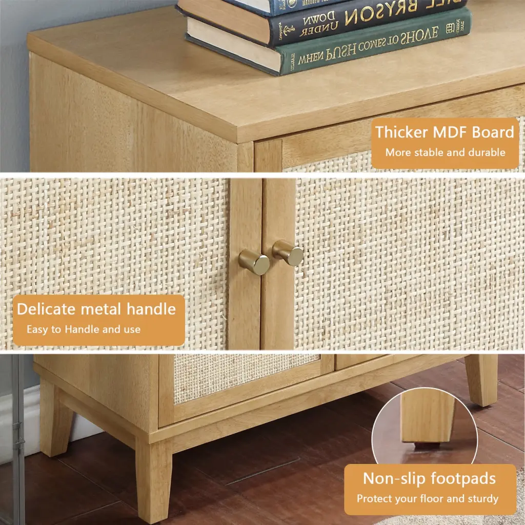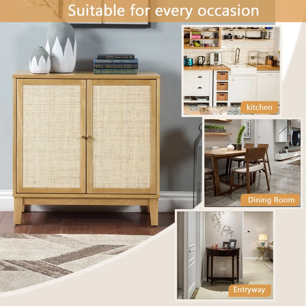 Buffet Cabinet with Storage,Storage Cabinet with Natural Rattan Decorated Doors,Rattan Cabinet with Customizable Shelf,Sideboard for Living Room,Kitchen,Hallway,2 doors, storage, Natural Description: Multifunctional Rattan Storage Cabinet This buffet is not only beautiful but also functional! It combines unique rat