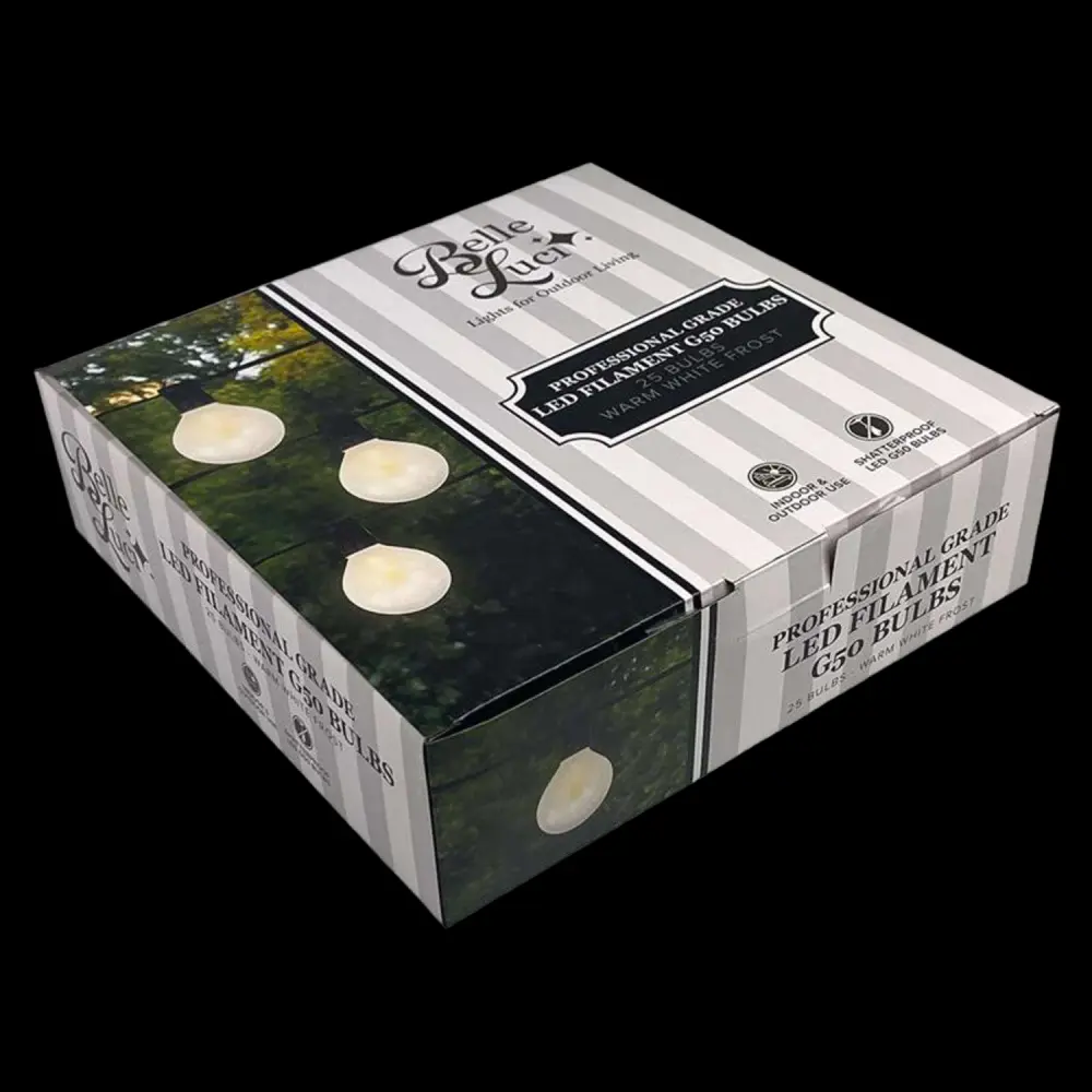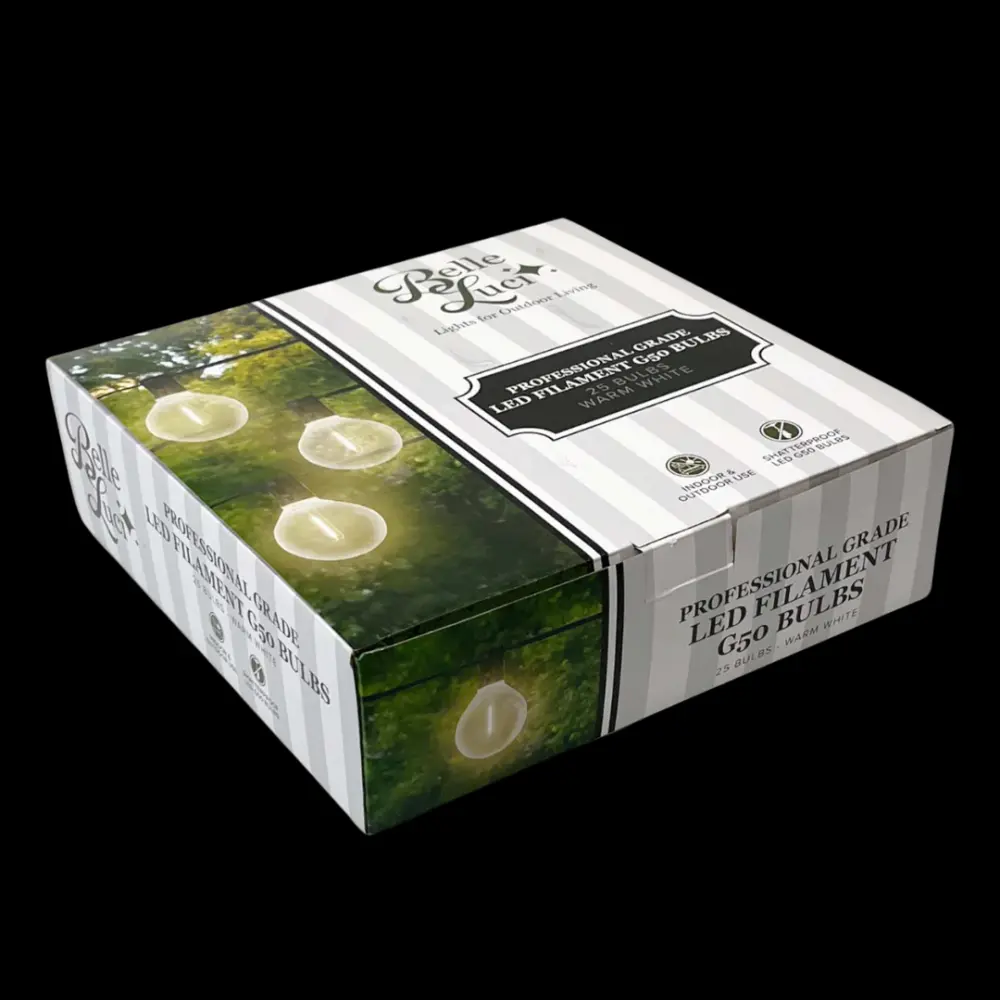 - Sold in a box of 25, the G40 and G50 bulbs are a cost-effective solution for large patio and outdoor lighting installations