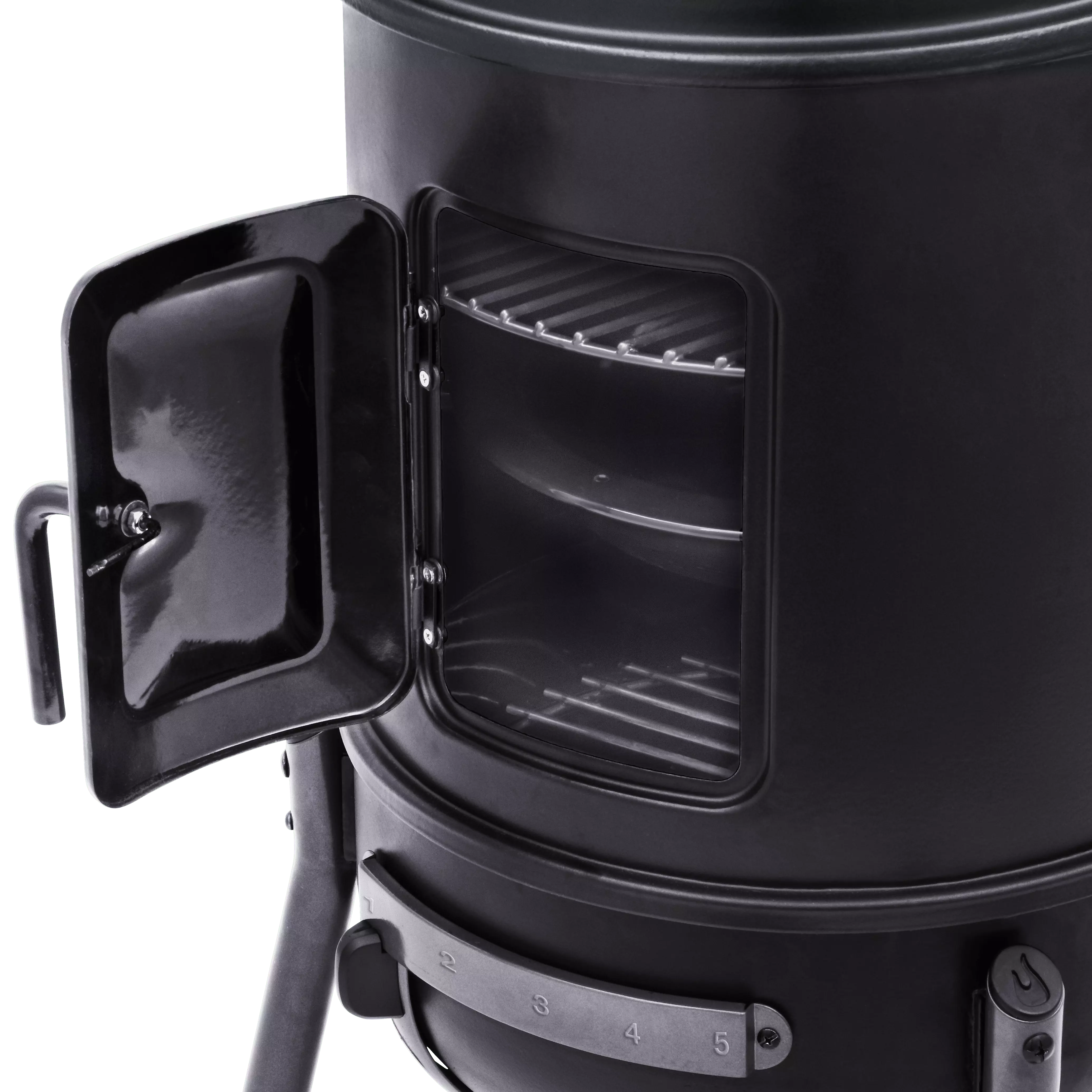 - Porcelain-coated steel lid. body and fire bowl