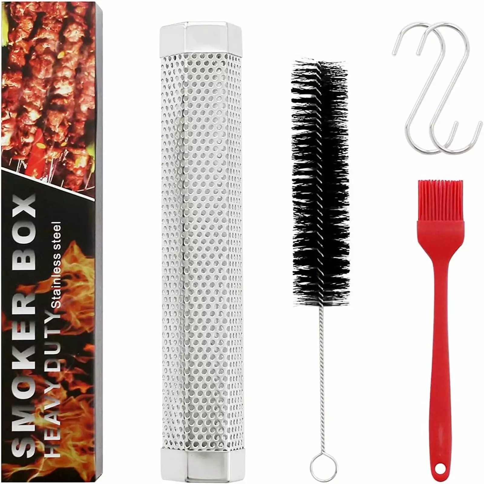 [GIFT BOX INCLUDES AND IDEAL FOR GIFT CHOICE]Gift box package includes 1 x 12 Hexagon Pellet Smoker Tube; 1 x Cleaning Brush; 2 x S Hooks; 1 x Brush. It is a perfect gift idea. just have a try.