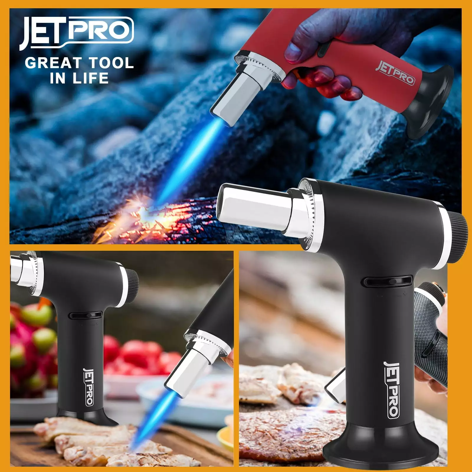 Light Up with Piezo Ignition Technology – Just press to light fire. easy to operate with the gas flow regulator and air flow control valve cooking torch. can be flame intensity controlled. Release the button. the flame goes off.
