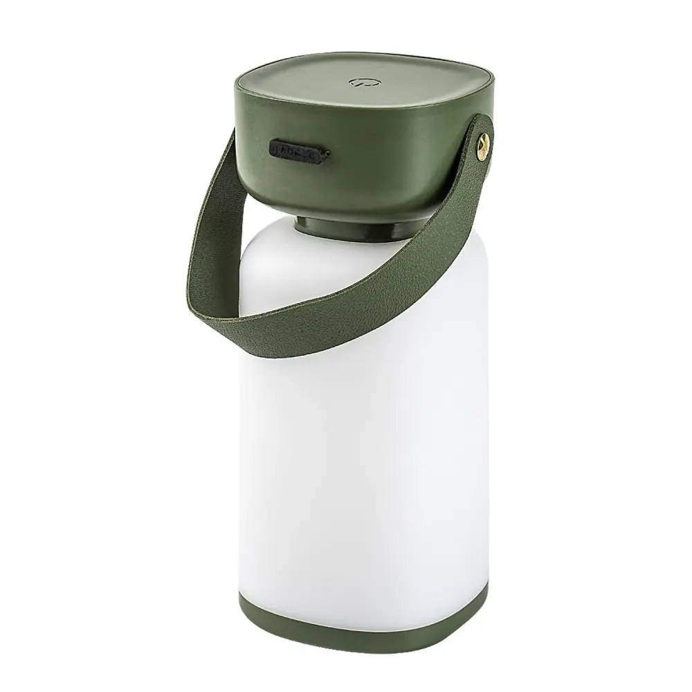 Rabalux Funes outdoor decorative lamp is an ideal choice for those who appreciate Nordic style and lamps with wide functionality. The table lamp is made entirely of green plastic with a white shade. The bottle-shaped fixture is equipped with a leather-like handle, allowing the lamp to be effortlessly carried.