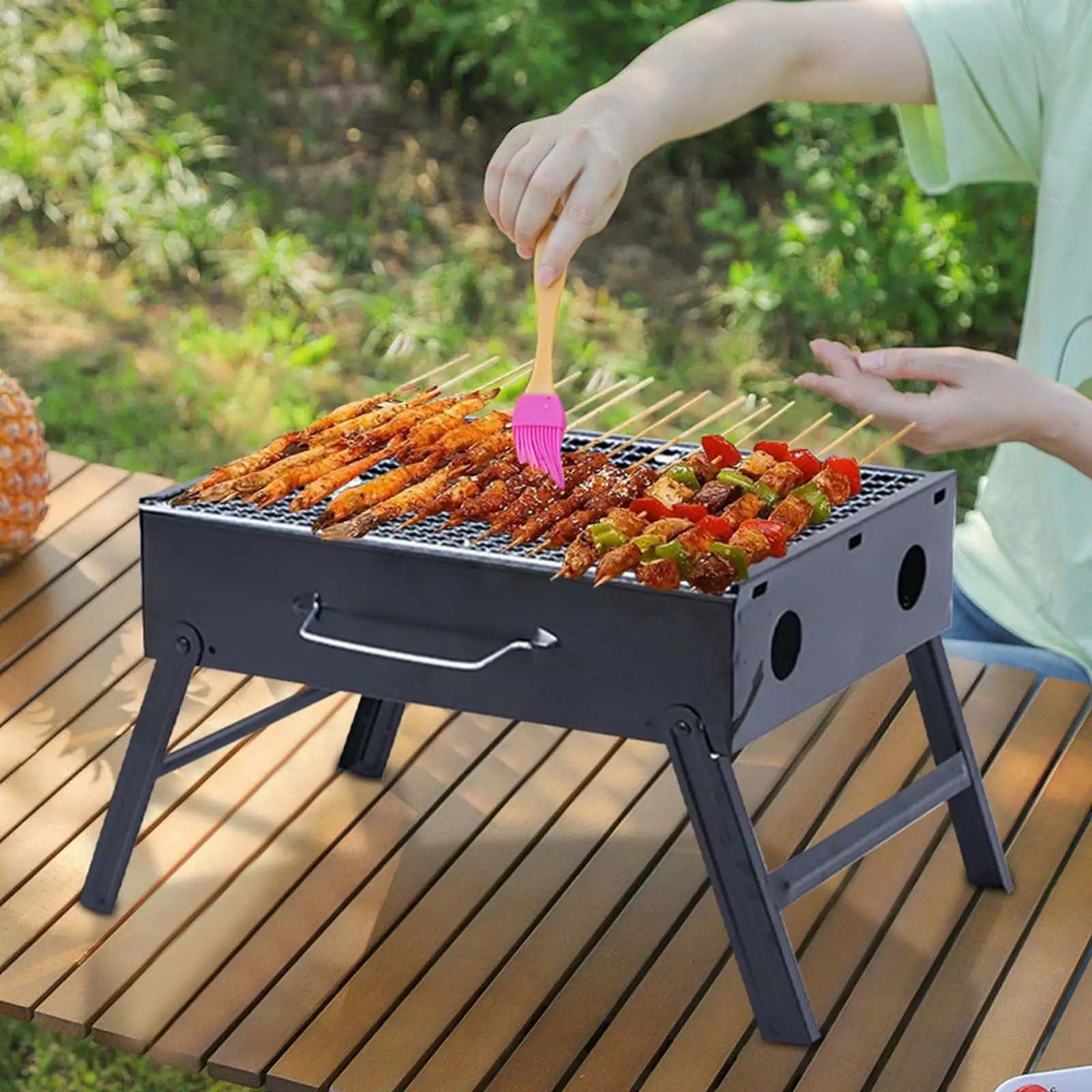 - BBQ Barbecue Grill. Portable Foldable Charcoal Grill for Indoor Outdoor. Stainless Steel BBQ Tabletop Grill for Picnic. Garden. Terrace. Camping. Travel. Hiking