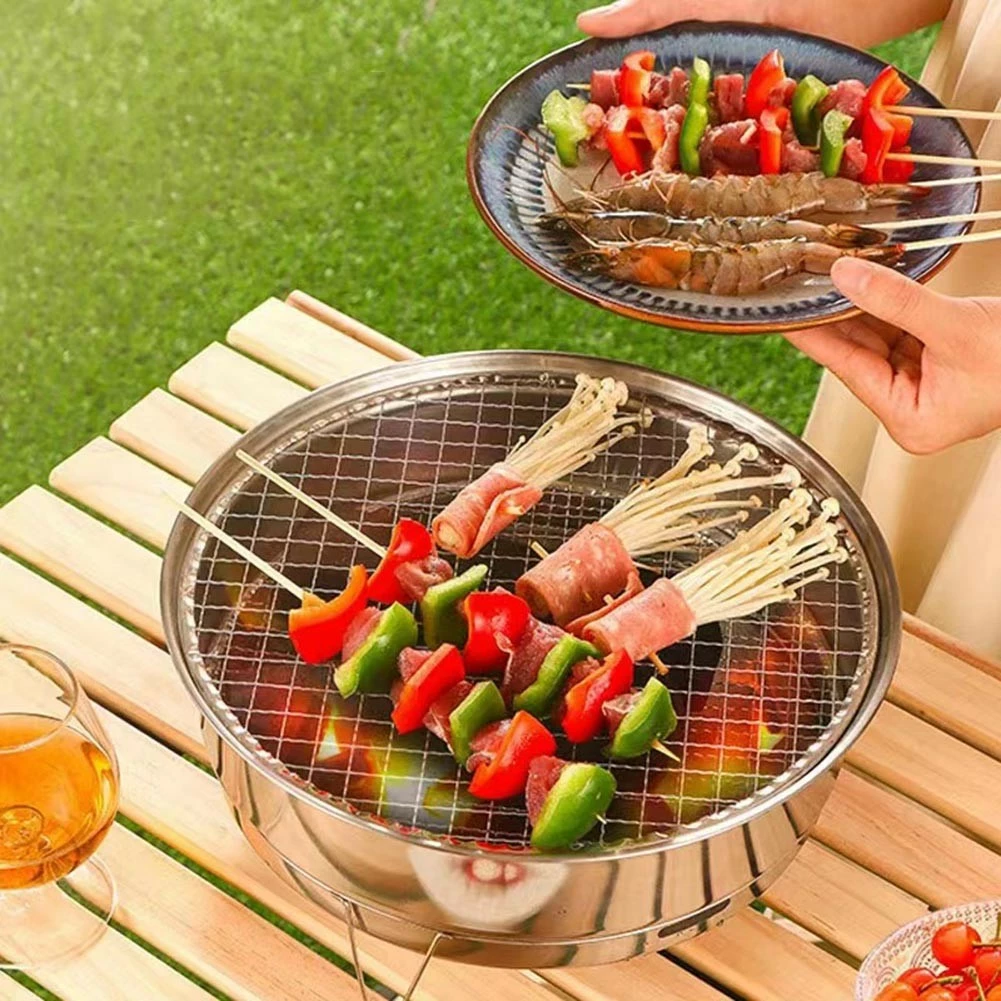 Mesh Grill is equipped with rack. furnace body. carbon mesh. grilling mesh. silicone brush. tongs;