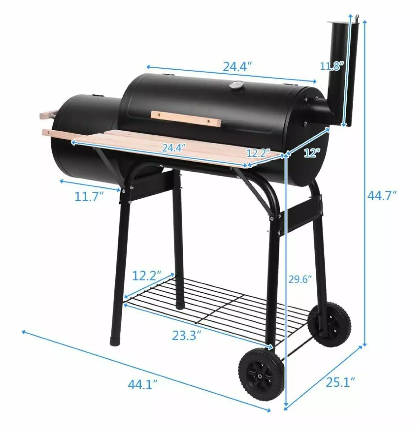 - [LARGE COOKING SPACE]Main cooking chamber measures 24×12 which can cook about 16 hamburgers. Porcelain-coated wire cooking grates is anti-rust and can heat the food evenly. Perfect for a party for 15 person