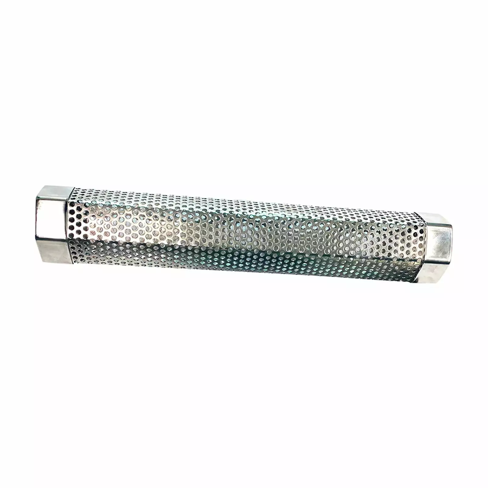 The hexagonal smoker tube can stay steadily and will roll on grill grate. Open cap at end is for easy filling and lighting. Closed cap at other end keeps pellets inside. With excellent workmanship. the smoker tube is very and will be broken or bent long-time use.