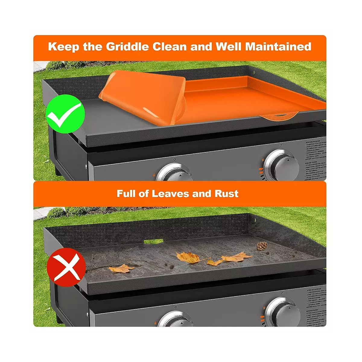- [Keep Griddle Clean – GRIDDLE COVER MAT]This silicone griddle mat cover provides extra protection when the grill is not in use and keep it clean and tidy. Prevent unwanted guests like pollen. and dust from infiltrating your griddle and ready for use.