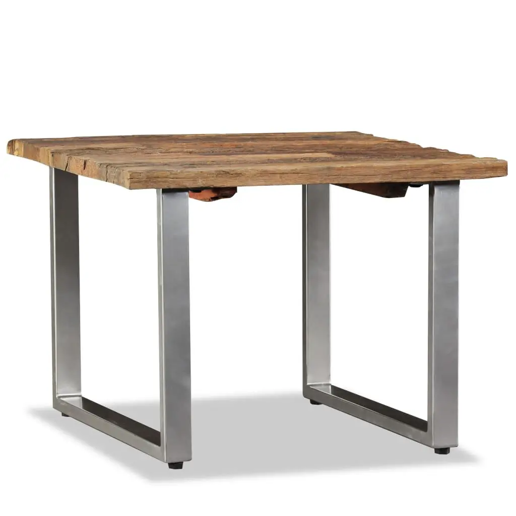 This end table is handmade of solid reclaimed wood. The rough appearance of the wood and the craftsmanship add to the coffee table’s spectacular retro style. Every step of the process is carried out with the greatest care, be it polishing or lacquering. The beautiful wood grains create every piece of furniture unique and slightly different from the next. The legs are made of durable wrought iron that adds to the table’s sturdiness and stability. Assembly is really simple.