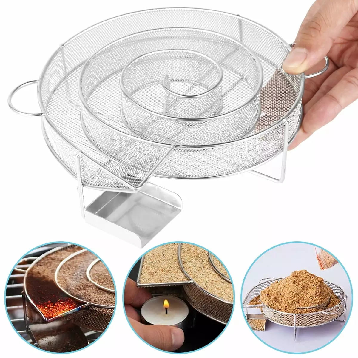 - [Round Design]This style of cold smoke generator looks like a maze. The round maze shape design can let you put more wood sawdust and space saving.