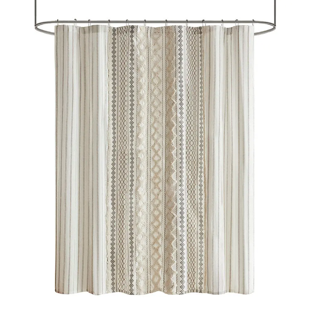 Cotton Printed Shower Curtain with Chenille Specification: Specification Elevate the look of your bathroom with the Ink+ivy Imani Cotton Printed Shower Curtain with Chenille Stripe. This 100% cotton shower curtain features a globally inspired Aztec print with a cotton chenille trim that adds a sophisticated touch. Ma