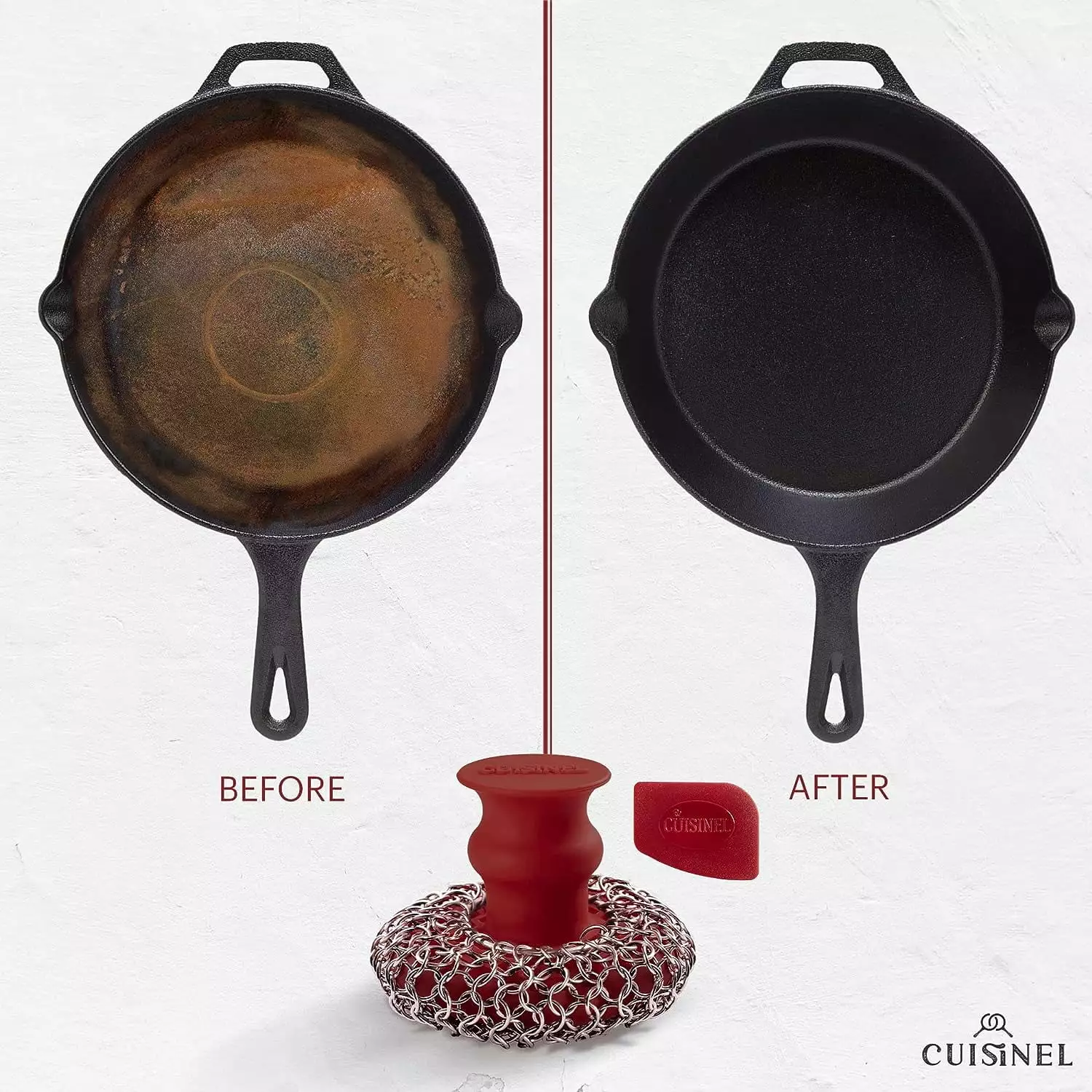 Experience hassle-free cleaning with the Cuisinel Cast Iron Cleaning Kit!