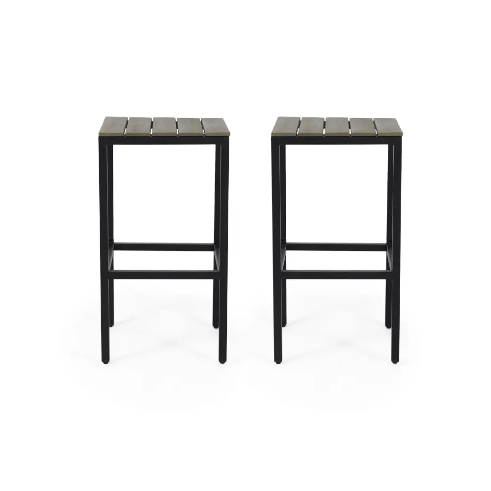 - Modern Industrial Style: These bar stools feature a powder-coated frame with sleek wooden slats, combining smooth metal and natural wood for a chic today’s industrial look, flawless for enhancing any outdoor space.