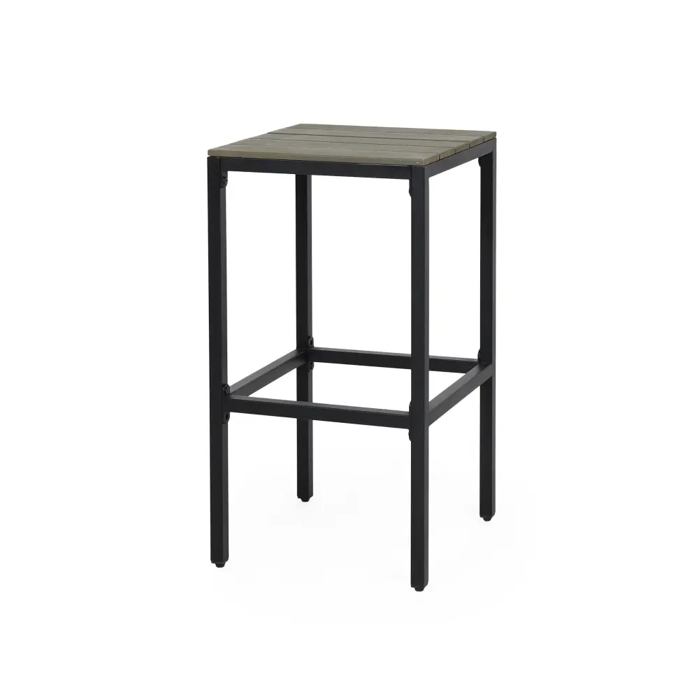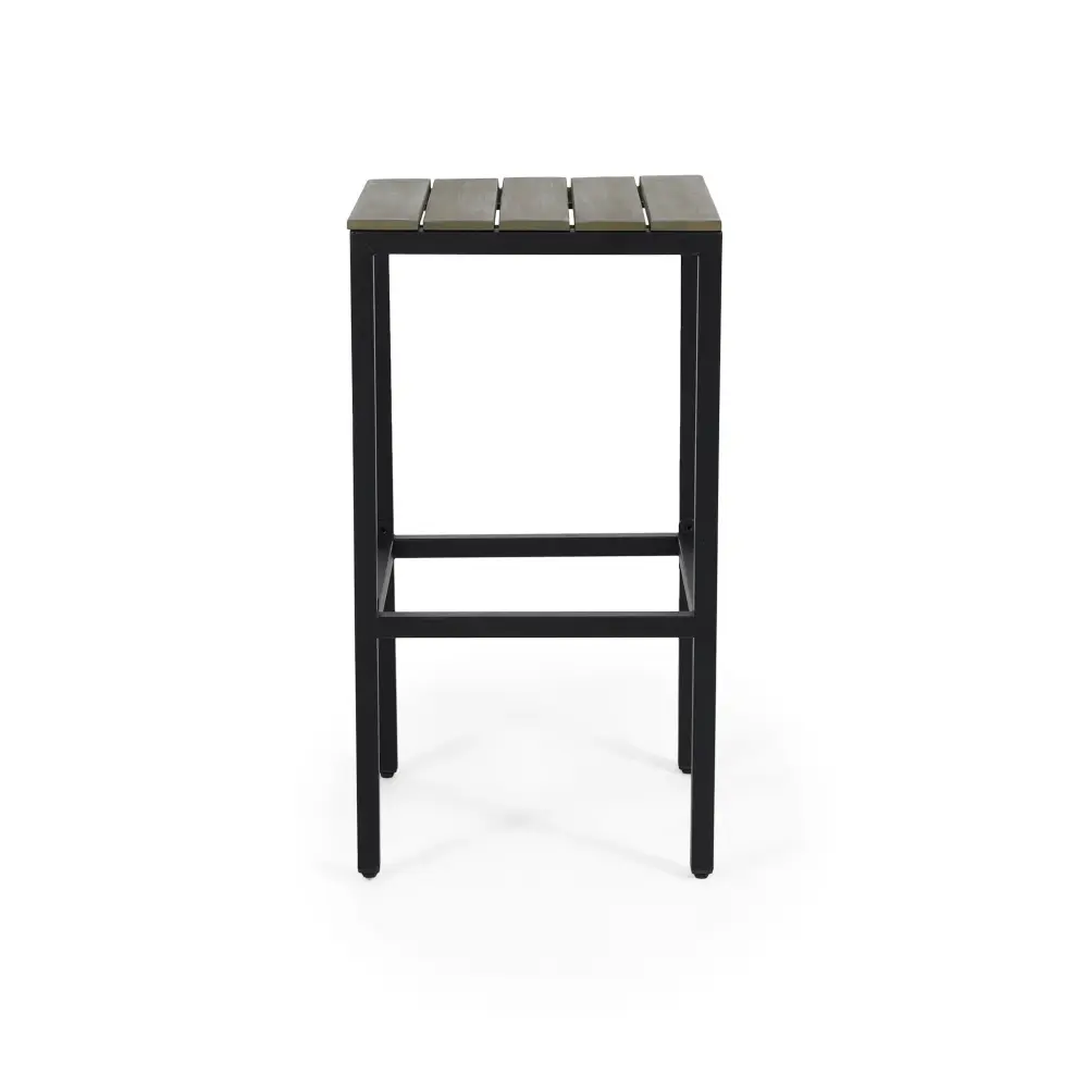 Outdoor Bar Stool With Slat Design And Metal Frame (Set