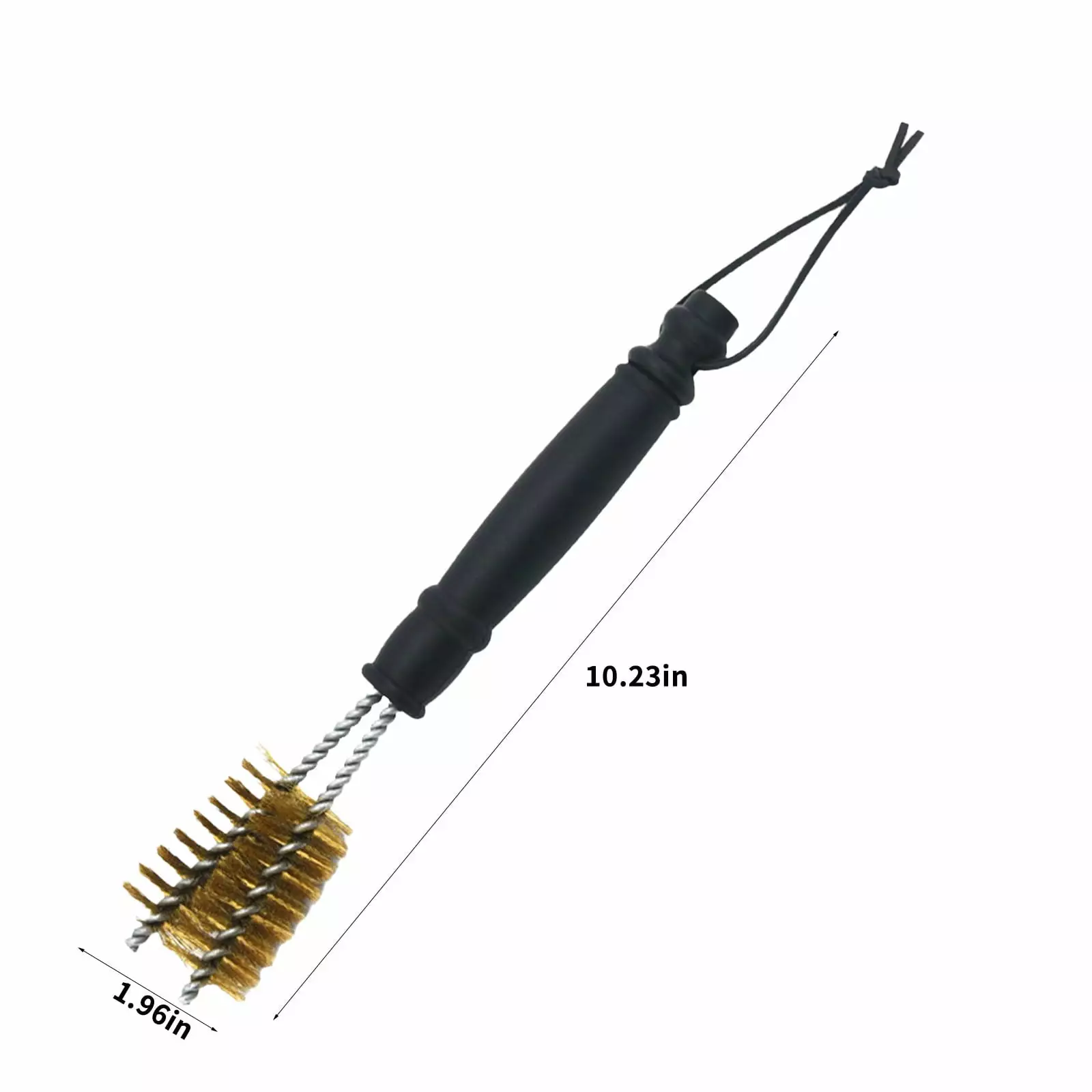 - Design: Handle PP plastic. injection molding. not easy to break. cleaning barbecue utensils more firm and durable. not easy to fall off and damage. Storage: There is a round hole at the end of the round handle. which can be hung on the wall to store without occupying space and saving space. Material: plastic handle. durable and strong. stainless steel 201 strong and rust free. copper wire brush. fine and tight. dirt everywhere to hide. one brush.