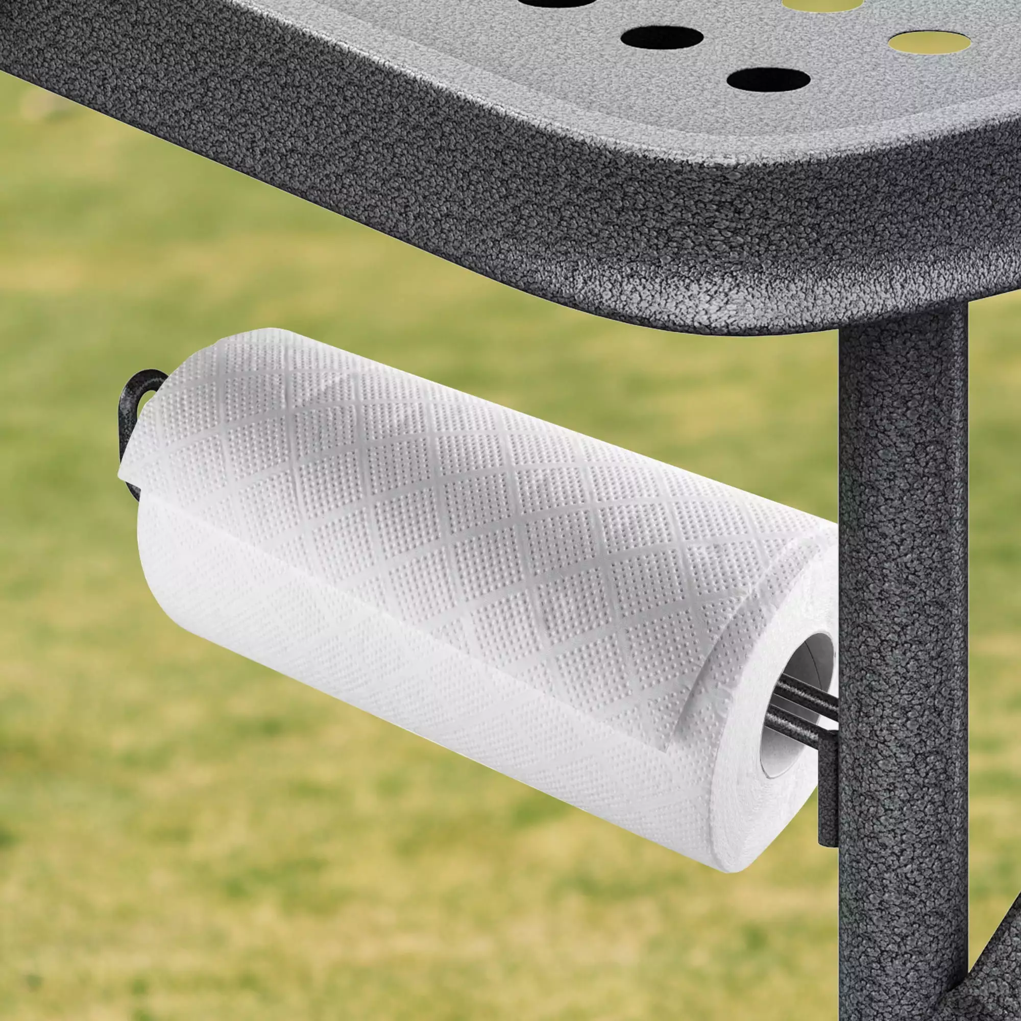 - Sturdy Grill: The upgraded steel frame of the folding table features excellent strength and durability. providing a reliable surface for hot food. Equipped with two small hooks an elongated hook and an irregular circular frame this table offers convenient storage options for your grilling accessories.