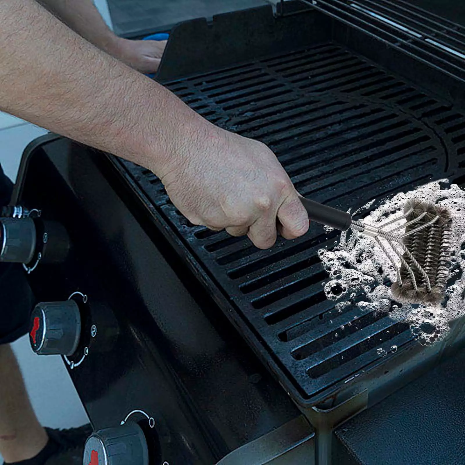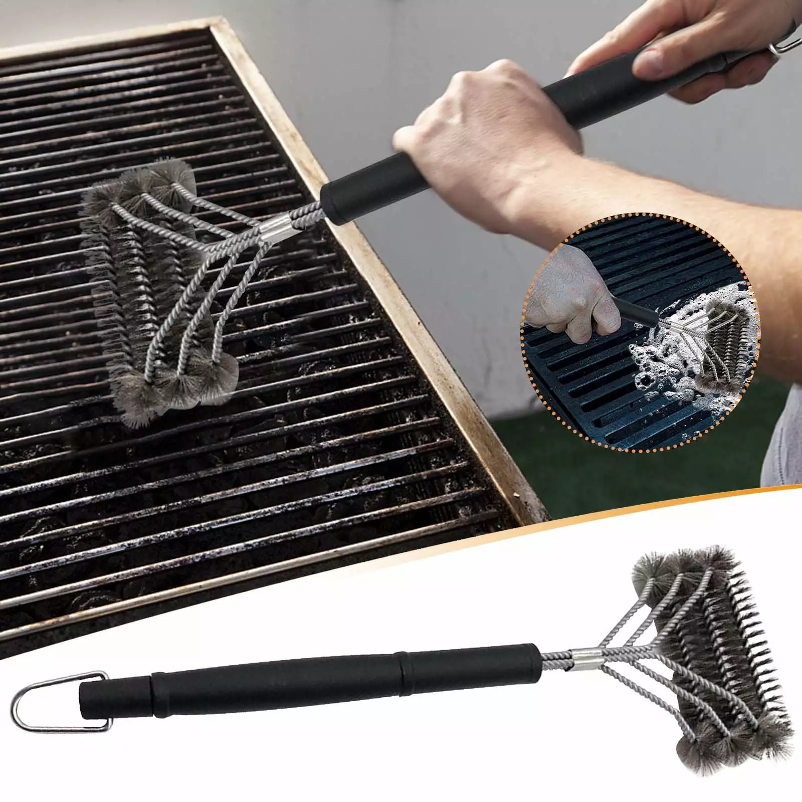 Barbecue brush with bristles: 3-spring design. not damaging the surface of the grill. no need to worry about metal bristles falling into food