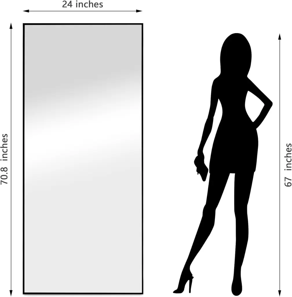Mirror Full LengthMeasuring in size 71″x24″, this full-length mirror with stand offers a generous viewing area, allowing you to see your entire outfit at a glance. Ideal for dressing rooms, bedrooms, and living rooms.