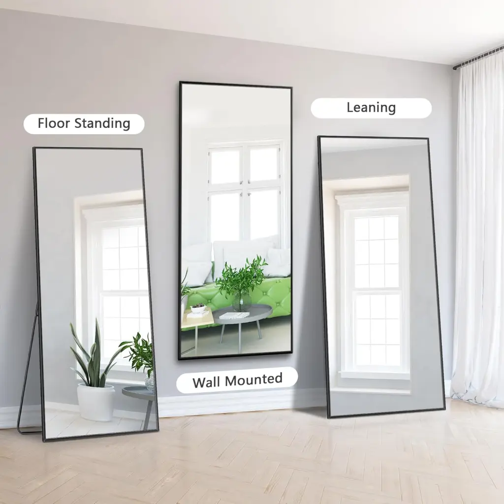 Multi functional UseEquipped with a stand for free-standing use, our full body mirror can also be a leaning mirror against wall or a wall-mounted mirror with included hardware. Ready to use right out of the box, this standing mirror offers flexible placement options for your convenience.
