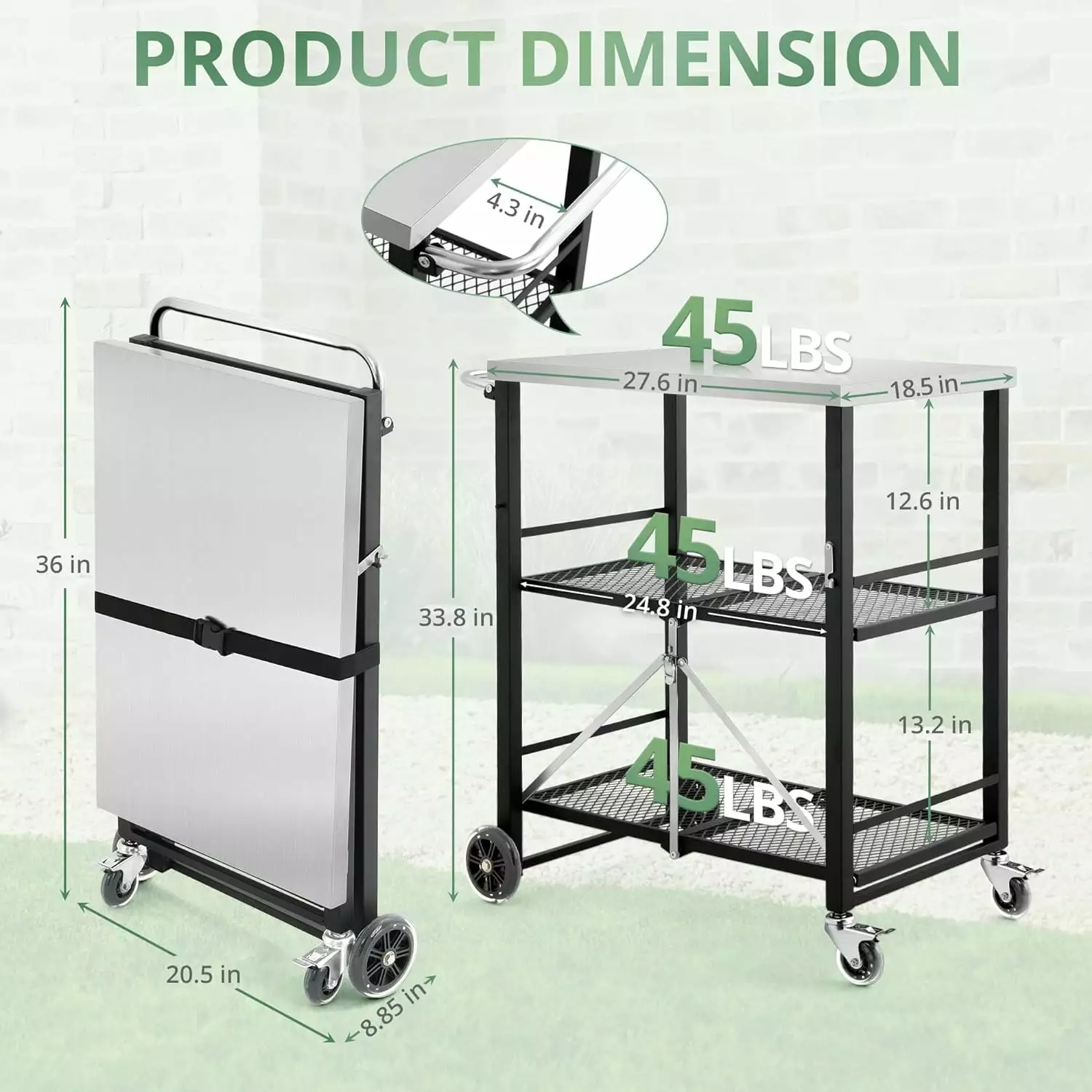Dycanpo versatile and convenient portable Outdoor grill Cart. It features a 90% pre-assembled folding design. which allows you to set it up in just 10 seconds and store it in narrow spaces when not in use. With upgraded 360° lock casters and directional wheels. you can easily move it indoors or outdoors and lock it securely in place.The table is made of stainless steel for superior strength. It serves multiple functions. such as a food prep table. BBQ grilling table and potting table.making it a versatile addition to your space. The ergonomic pusher design ensures easy transportation with minimal effort. Installation is hassle-free with all necessary hardware. labeled components. and detailed instructions included. Besides. our dedicated customer service team is ready to assist you 24/7. ensuring your satisfaction with our product.